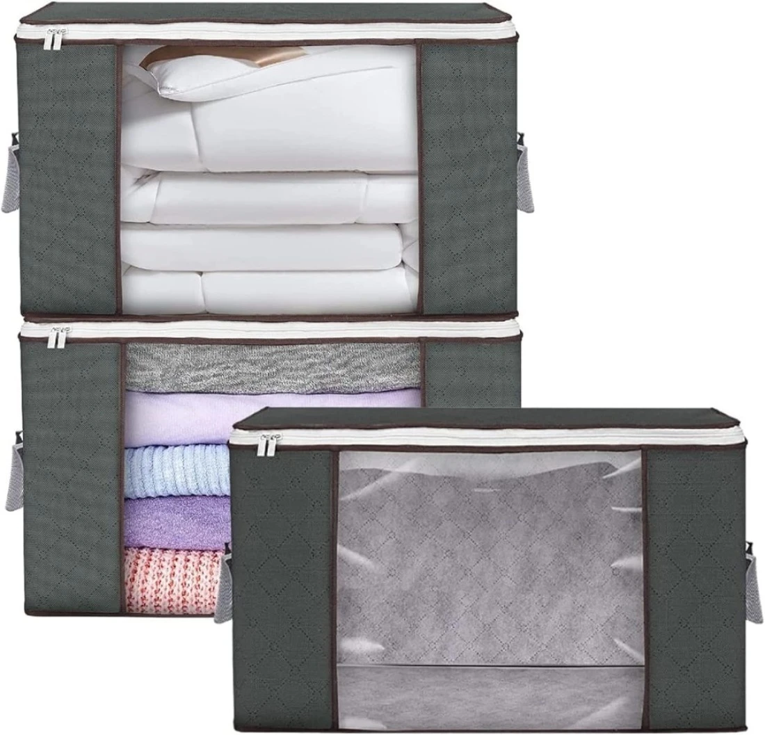 3-Pack Large Clothes Storage Bags Foldable Durable Space Savers with See-Through Window & Carry Handles Multi-Use Organizer Solutions