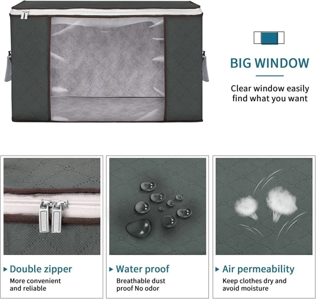Each storage bag measures 60 x 43 x 35 cm / 23.6 x 16.9 x 13.7 in and has a large capacity of 90L - It is roomy for your quilt, blanket, pillow, stuffed animal, jacket or other clothing.