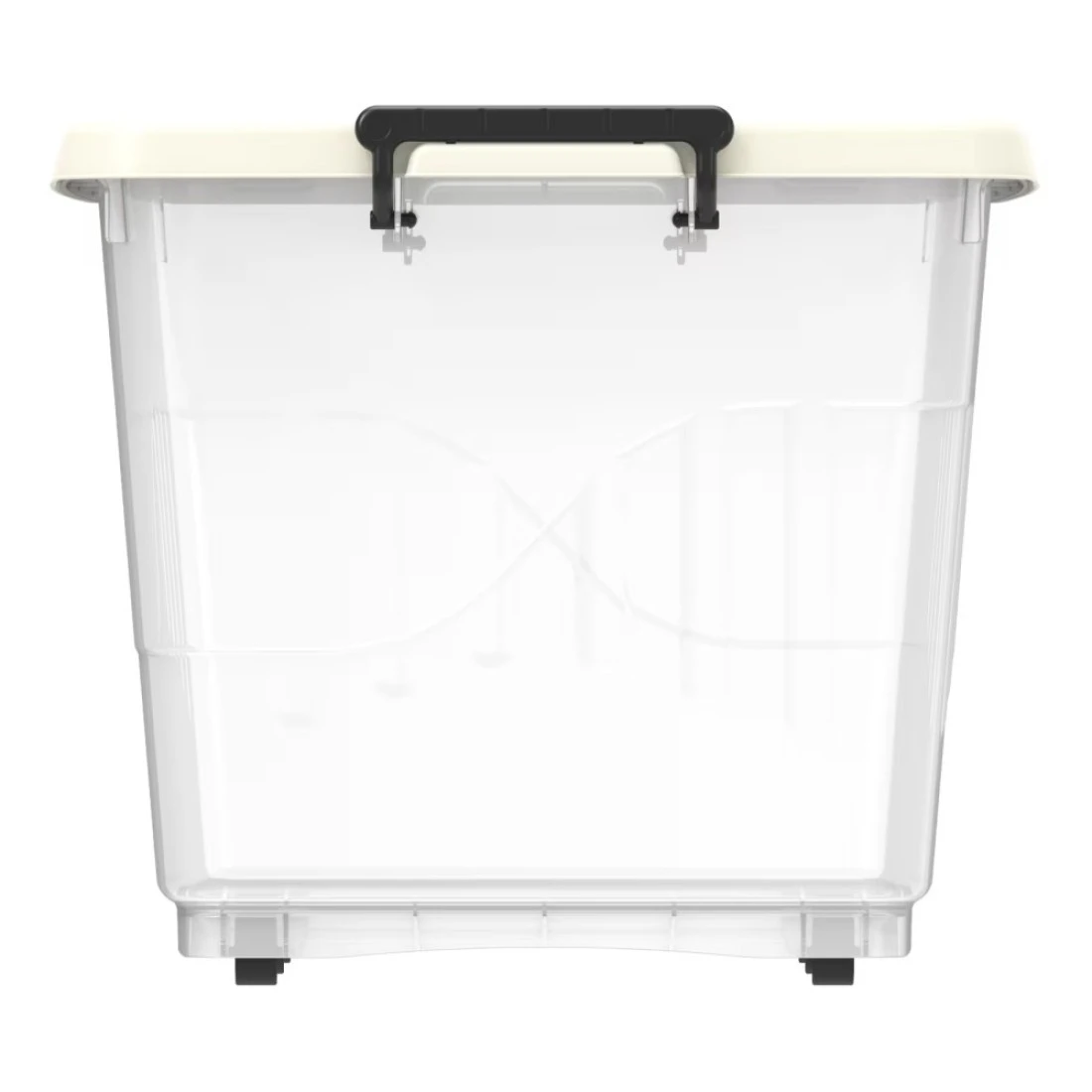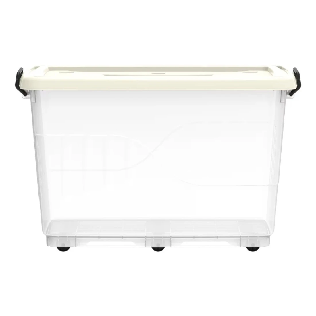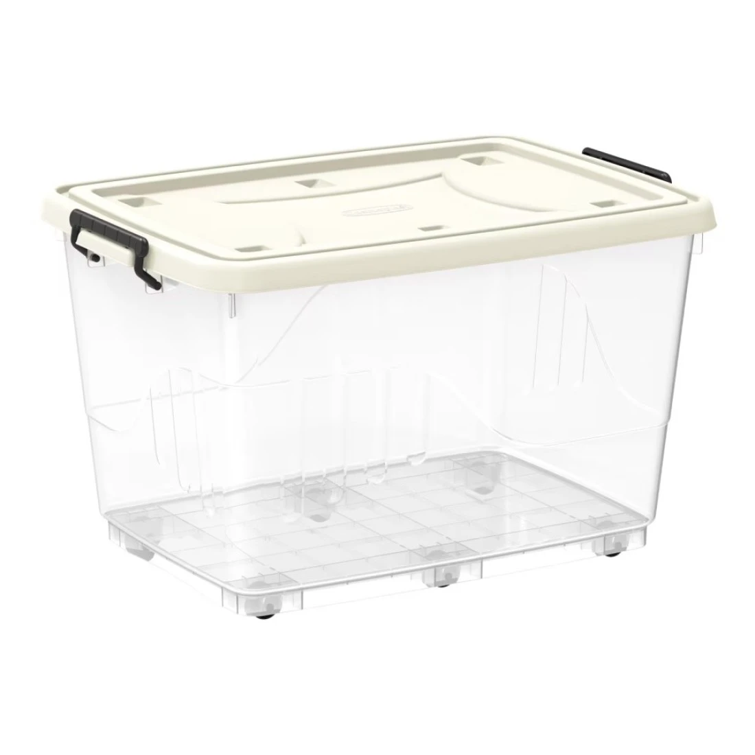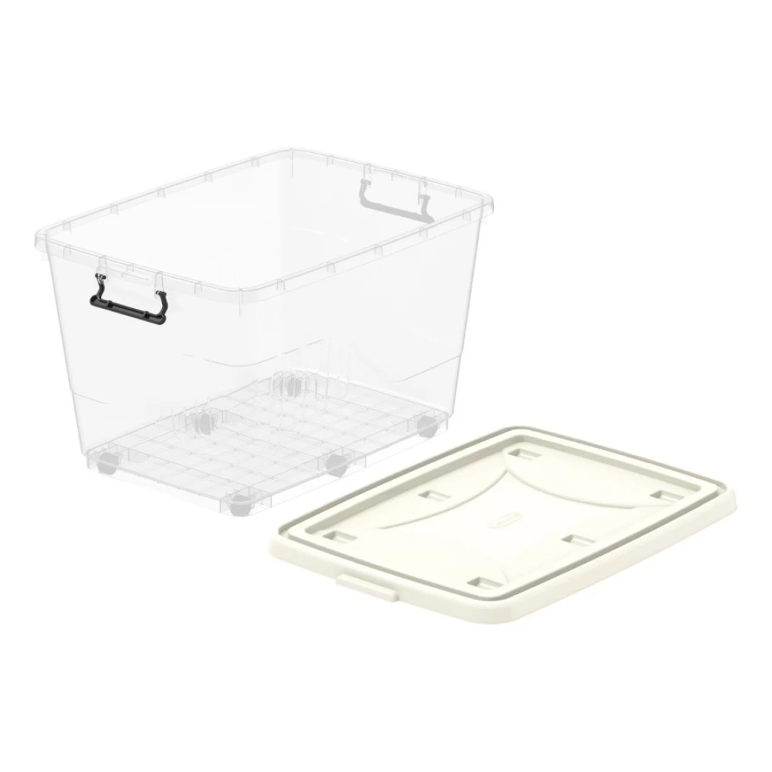 كوزموبلاست صندوق تخزين بلاستيكي بعجلات وغطاء قابل للقفل 82 لتر - أبيض، شفاف