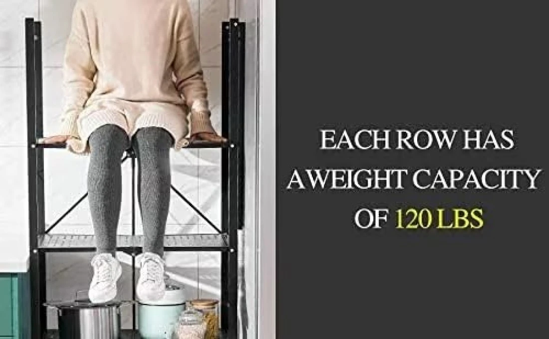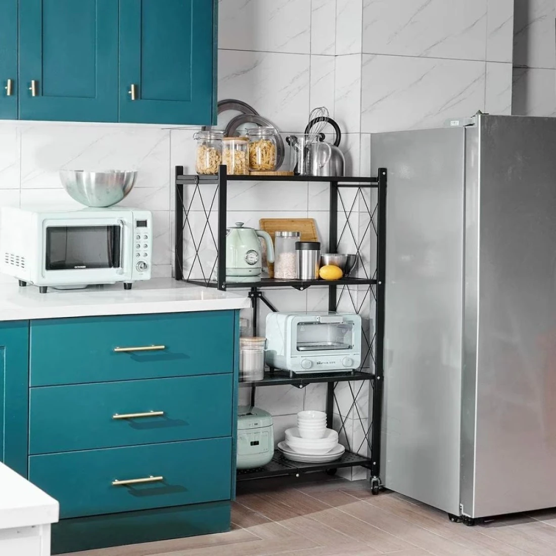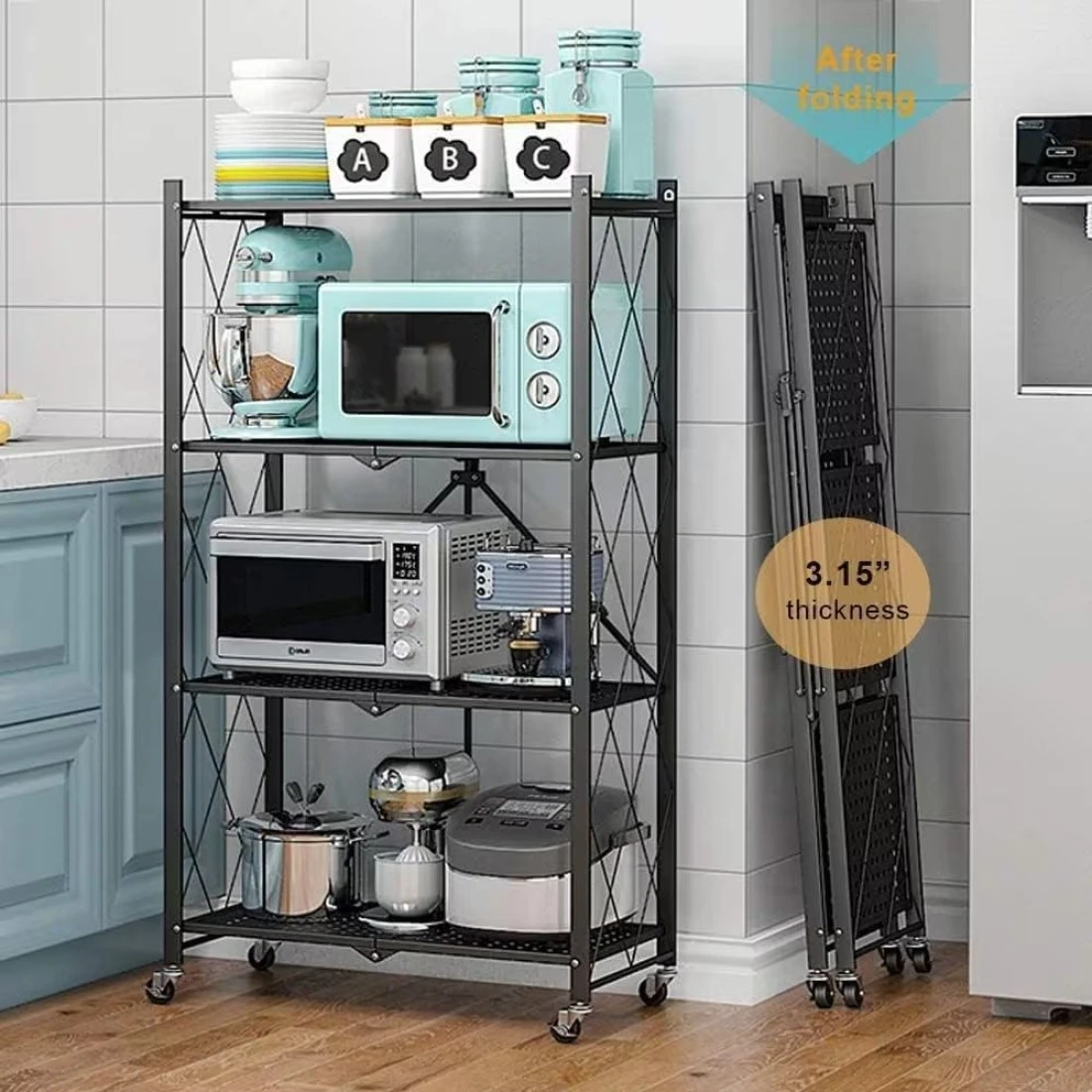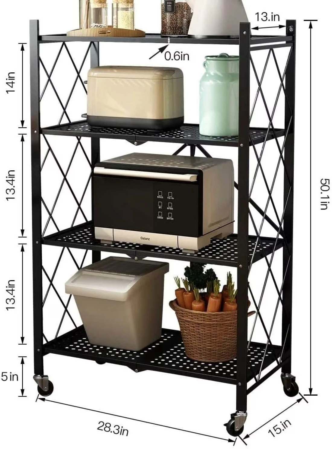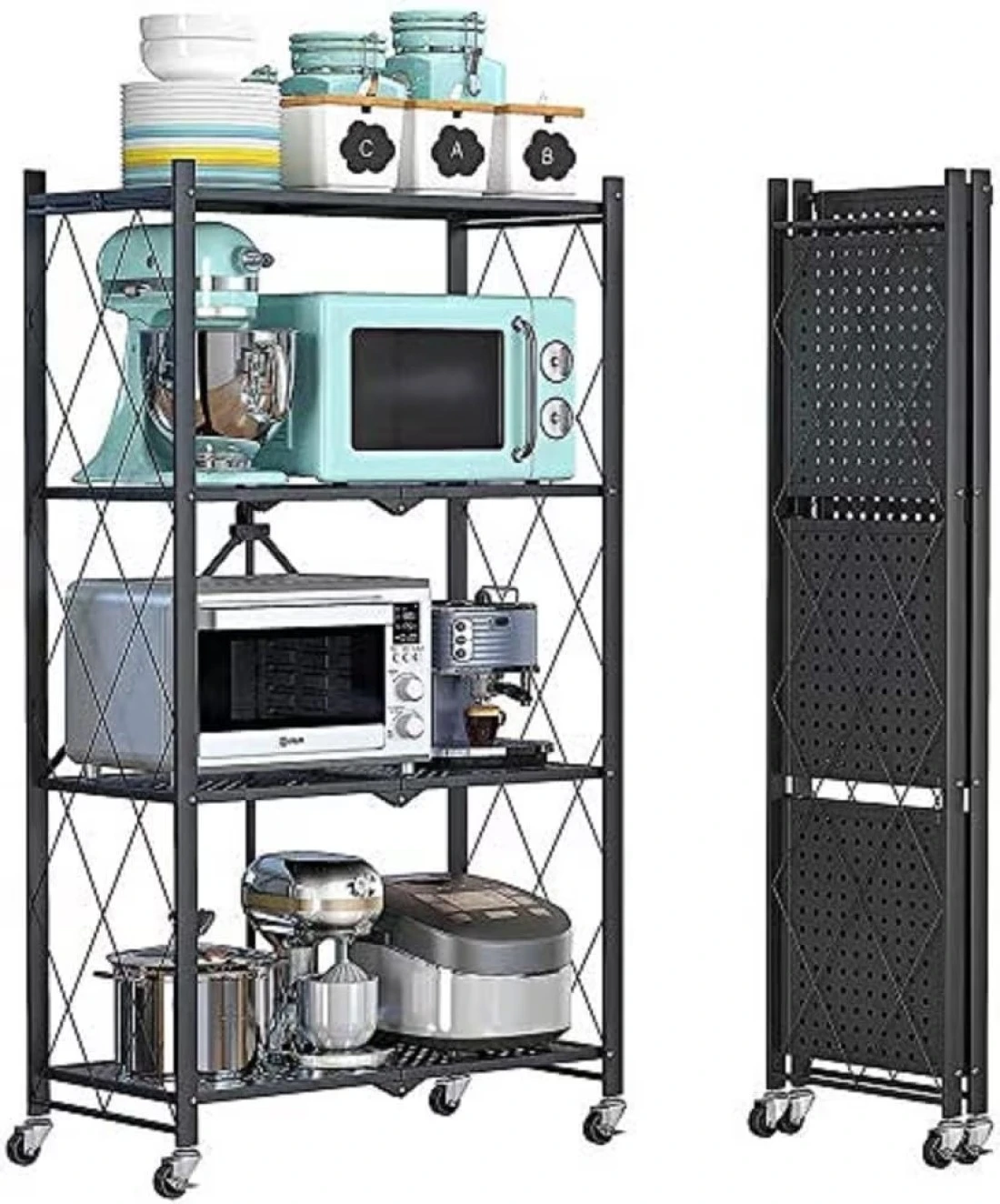 ECVV Leostar 4 Layer Shelf Foldable Storage Shelving Unit With Wheels, Metal Rack Display For Garage Kitchen Pantry Closet Laundry, Black, Str-4326, 4-Shelf