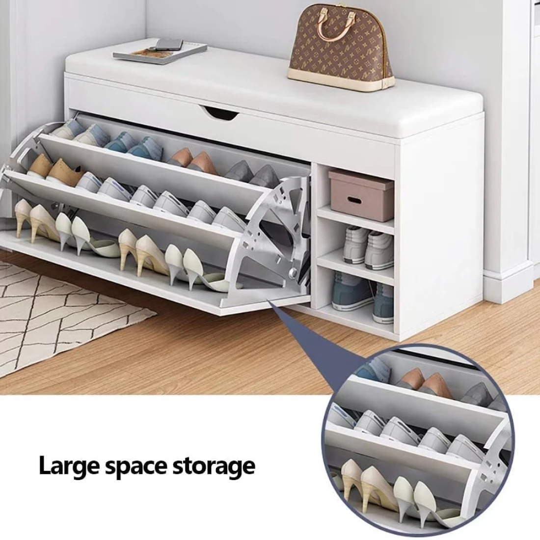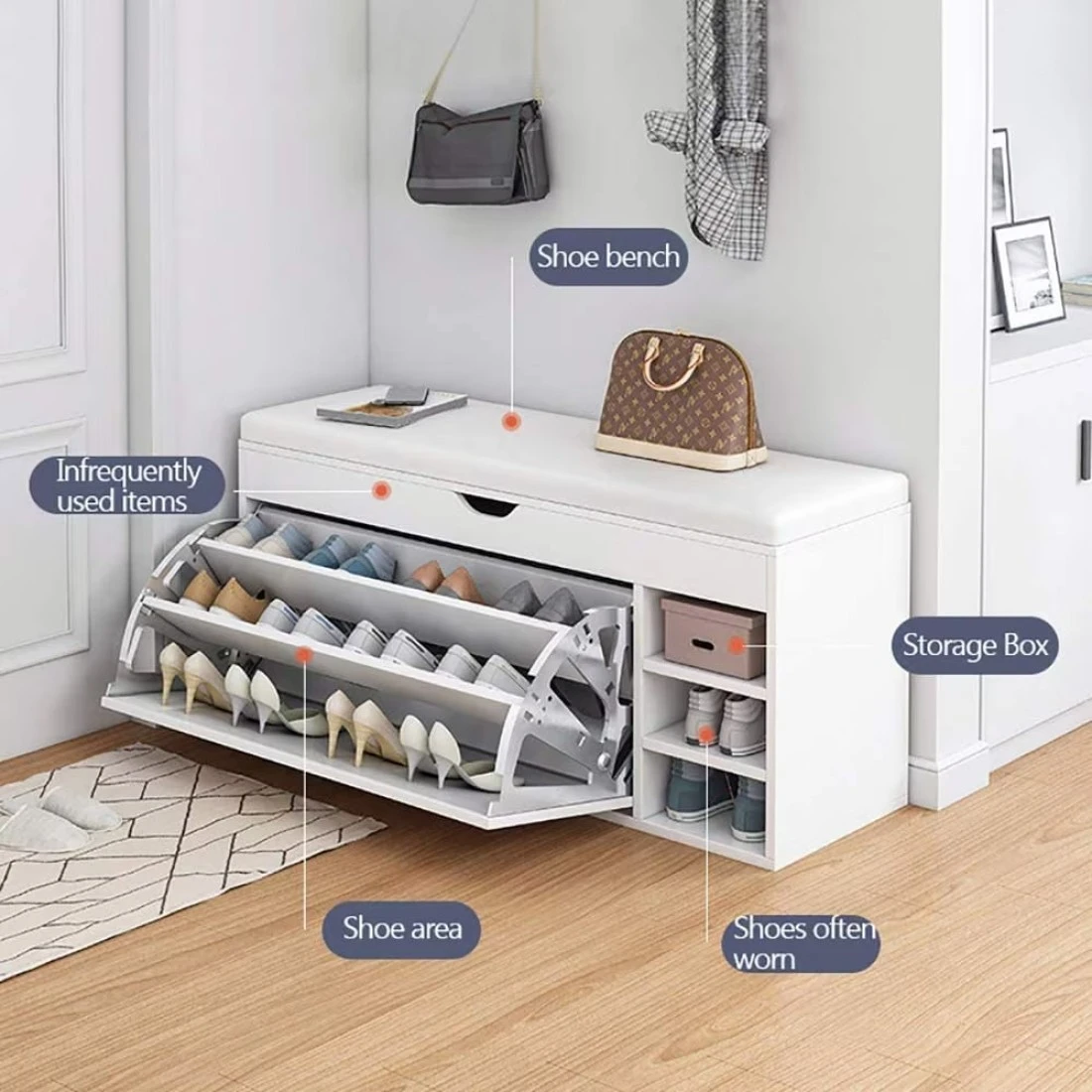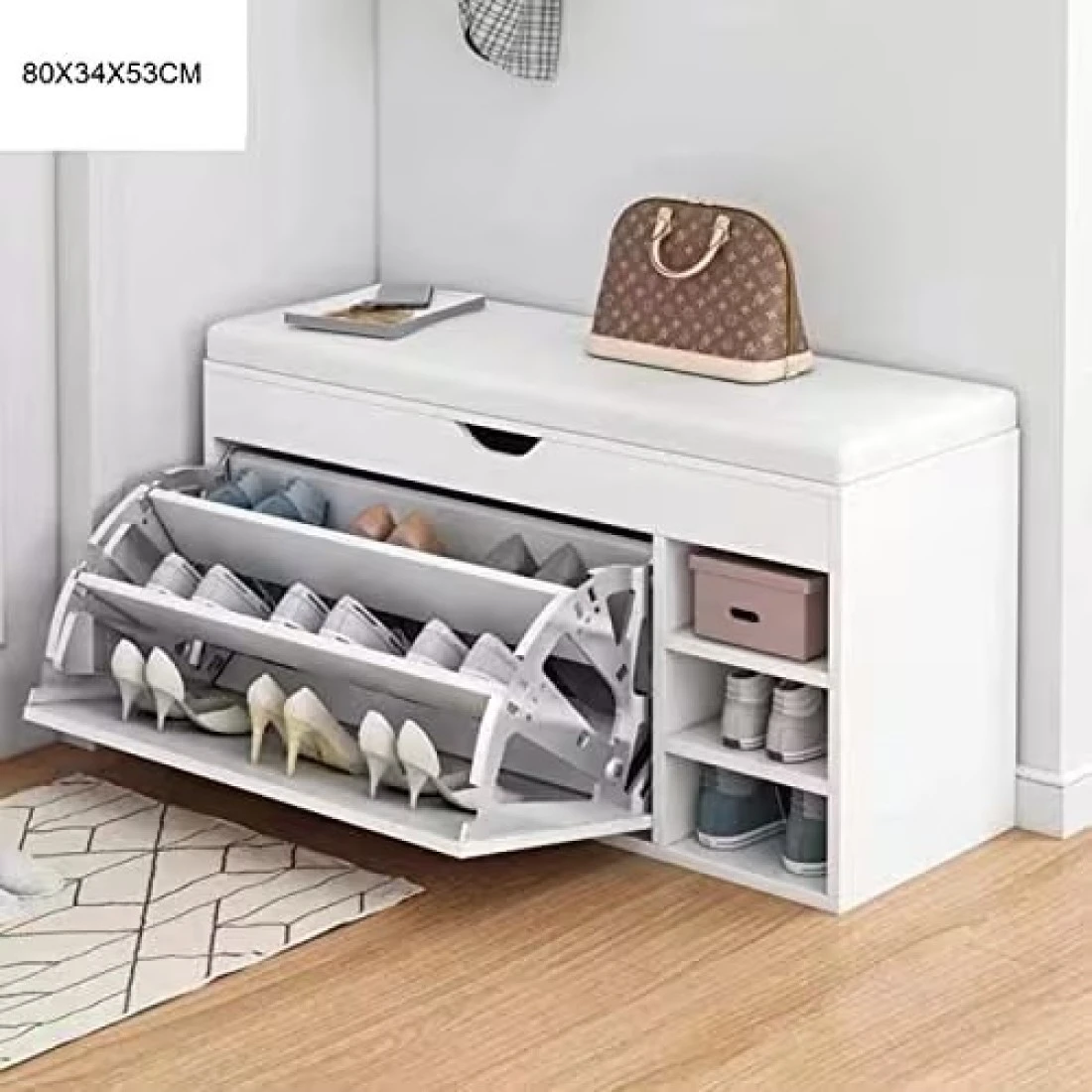 Generic Wooden Shoes Rack Bench With Shoe Changing Stool, Foldable Seat, Nonwoven Fabric Cover Closet, 80X34X53cm, White