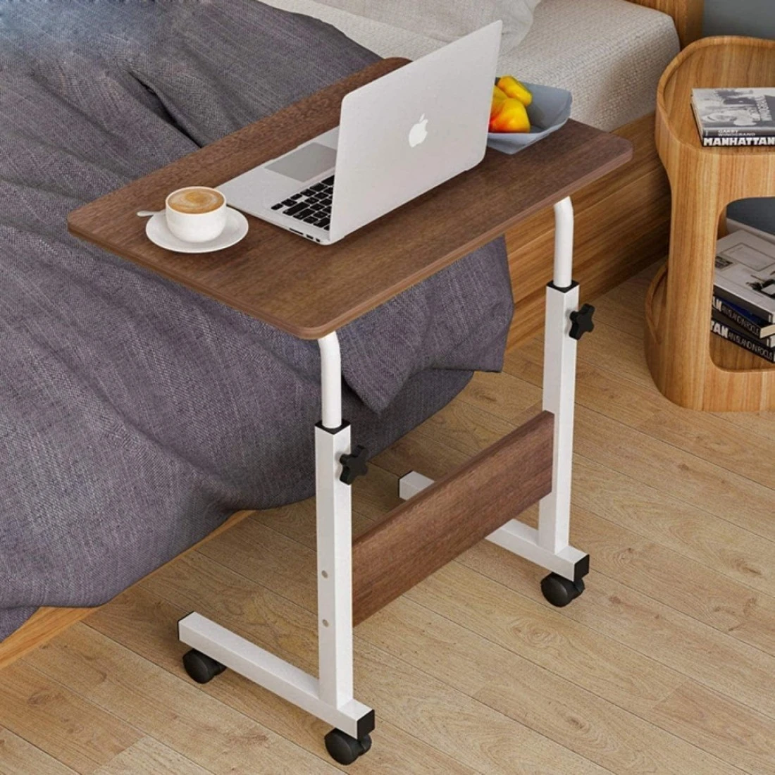 ECVV Mobile Side Table Movable Adjustable Laptop Computer Desk with Wheels Rolling Cart Portable Beside Sofa Couch Bed C-Shaped Dinner Tray Tables End Table for Living Room Bedroom
