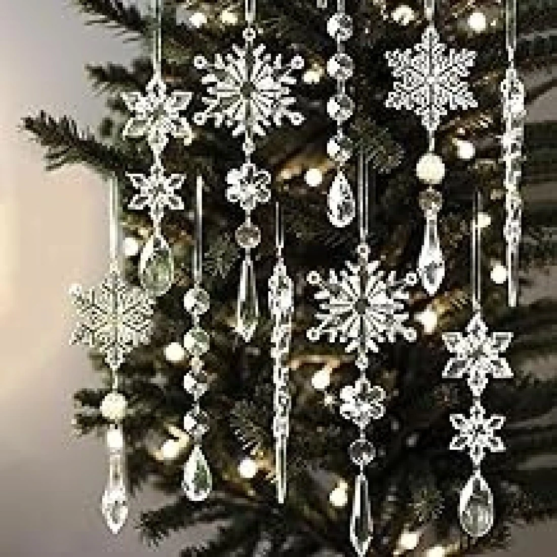 HELVAK 10Pcs Christmas Tree Crystal Decorations Hanging Acrylic Christmas Snowflake Ice Pillar Decorations Suitable for Christmas and New Year Parties winter Wonderland Chandeliers Crystal Decorations