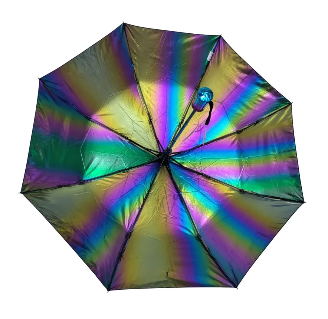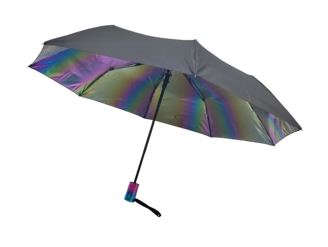 3 Fold Automatic Open Umbrella Black Inside PU Rainbow