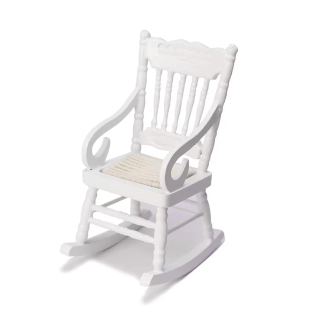 Dollhouse Miniature Rocking Chair 1:12 Scale Wooden Furniture Accessories Tiny Mini House Home Outdoor Cake Topper Decoration Model Living Room Scene Christmas Craft Displays (White, 1)