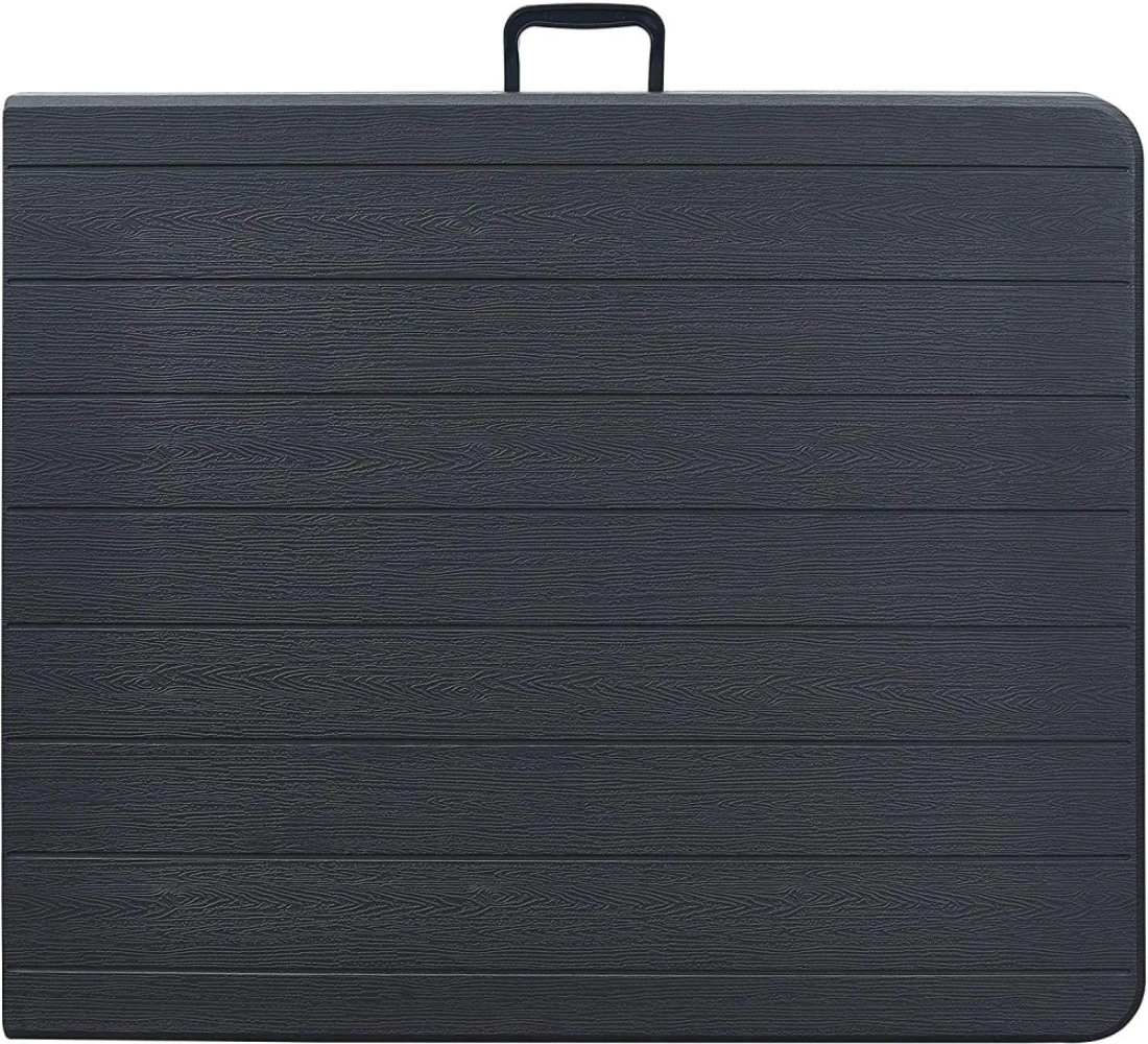 LANNY Portable Plastic Folding Table SZK180 Black Wood Design 180 * 75cm for 6-8 person Party/Picnic/Garden/Dining/Kitchen/Buffee/Restaurant