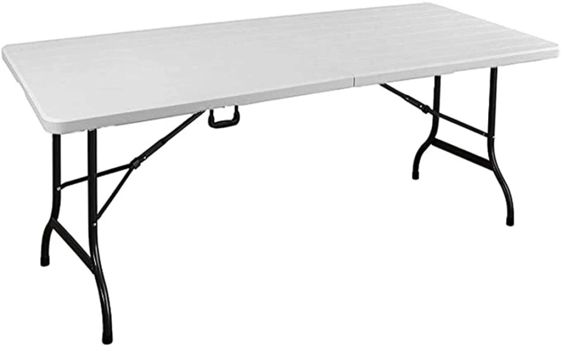 LANNY Portable Plastic Folding Table SZK180 White Wood Design 180 * 75cm for 6-8 person Party/Picnic/Garden/Dining/Kitchen/Buffee/Restaurant