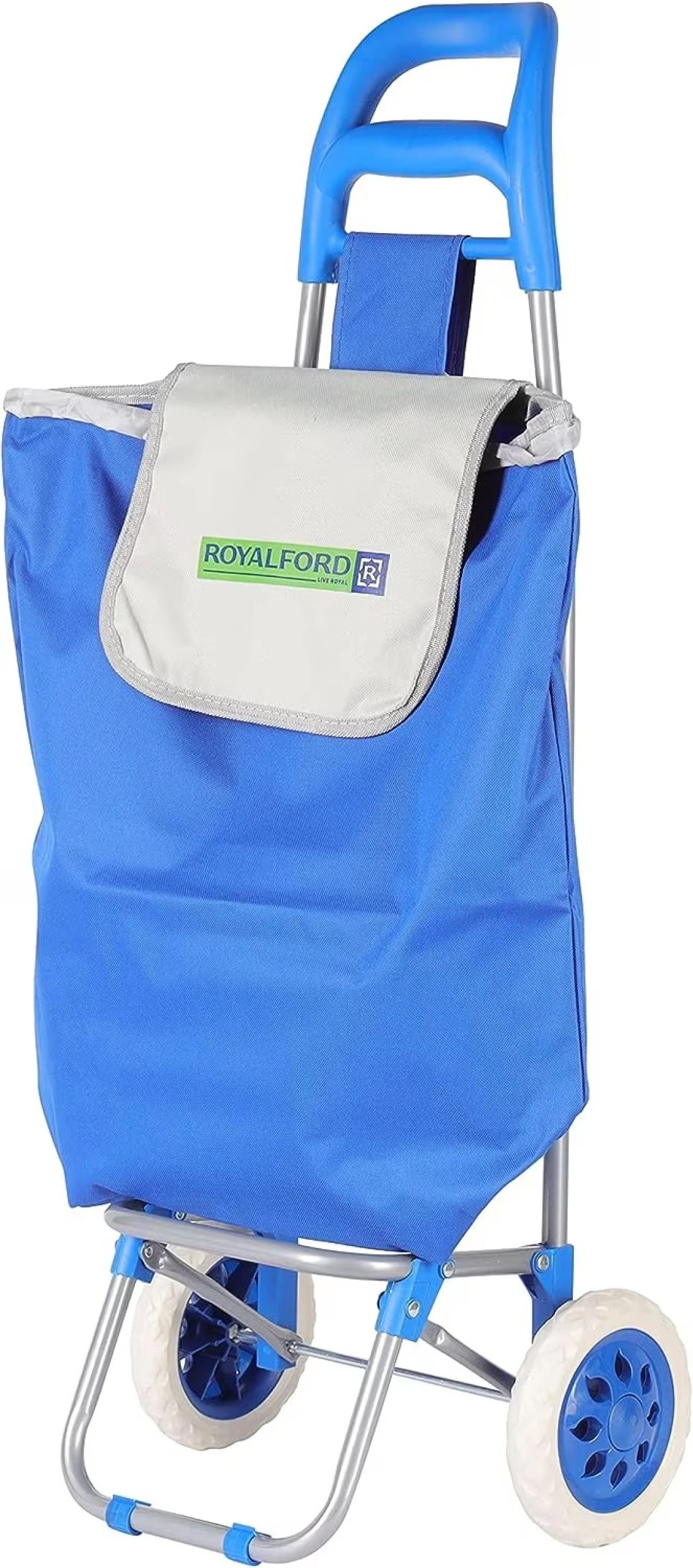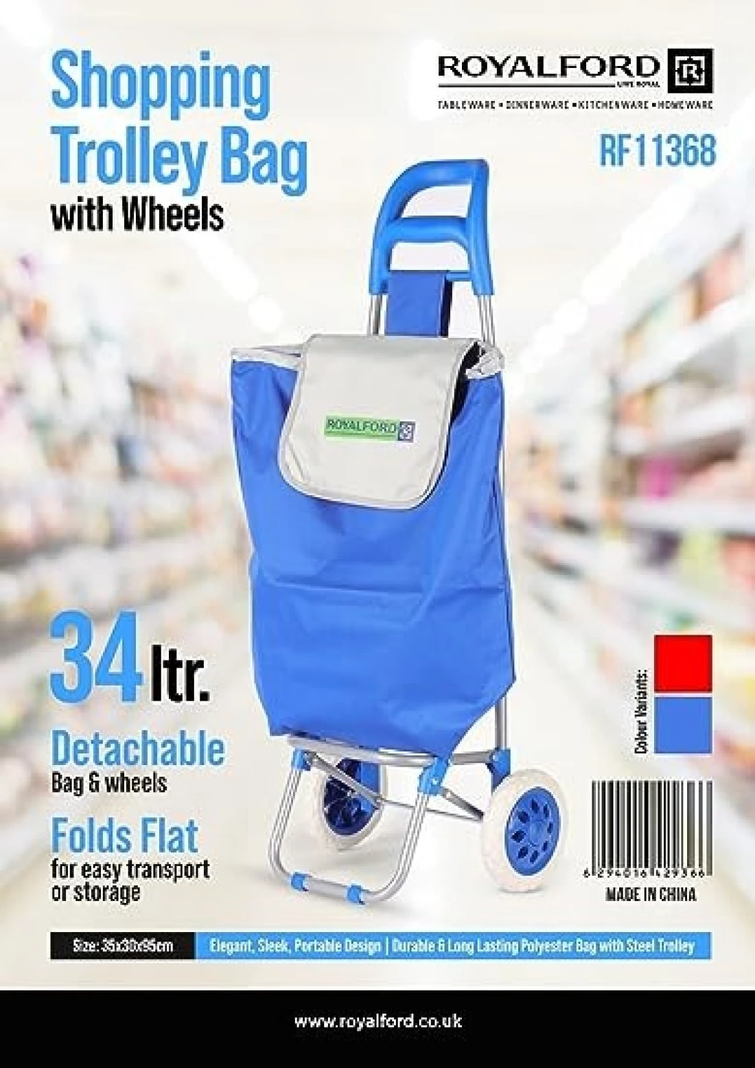 Royalford 34 L Shopping Trolley Bag- Rf11368 Multi-Purpose Utility Trolley Bag With Handles And Wheels Durable, Portable And Stylish Polyester Bag Large Space Perfect For Storing Things Blue