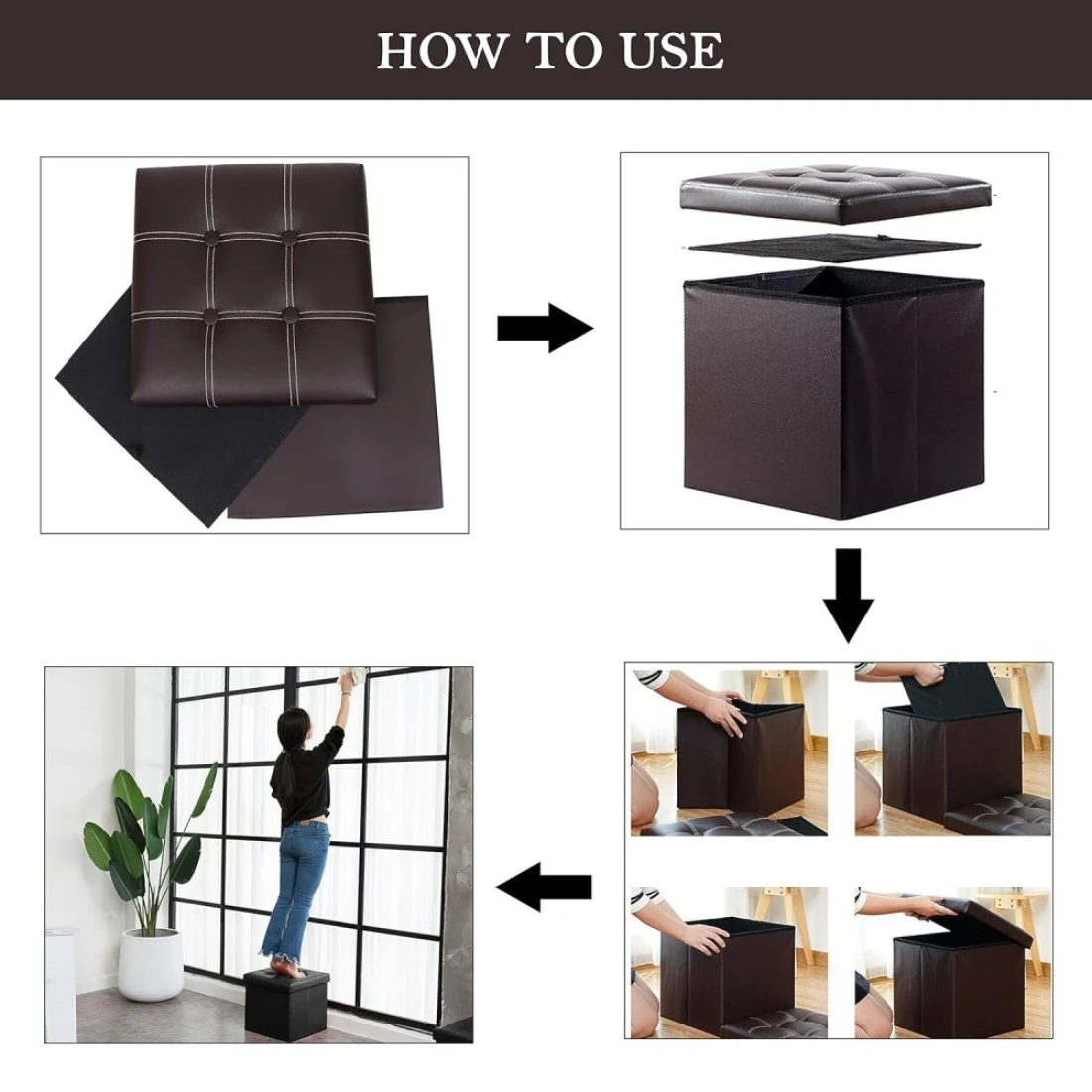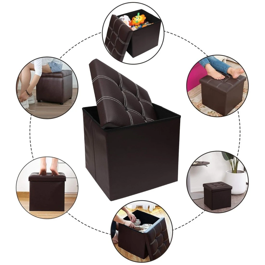 LAVISH Storage Ottoman Storage Stool Multifunctional Sofa Storage Box Storage Box Foldable Sorting Box Brown (Color : Brown Size : 38x38x38cm)