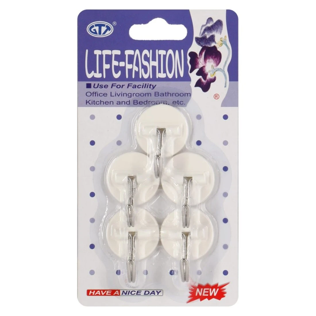 جي تي تي لايف فاشن خطافات لاصقة حزمة من 5 - أبيض 7465