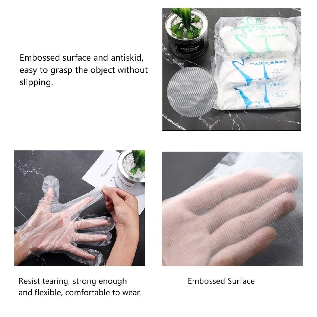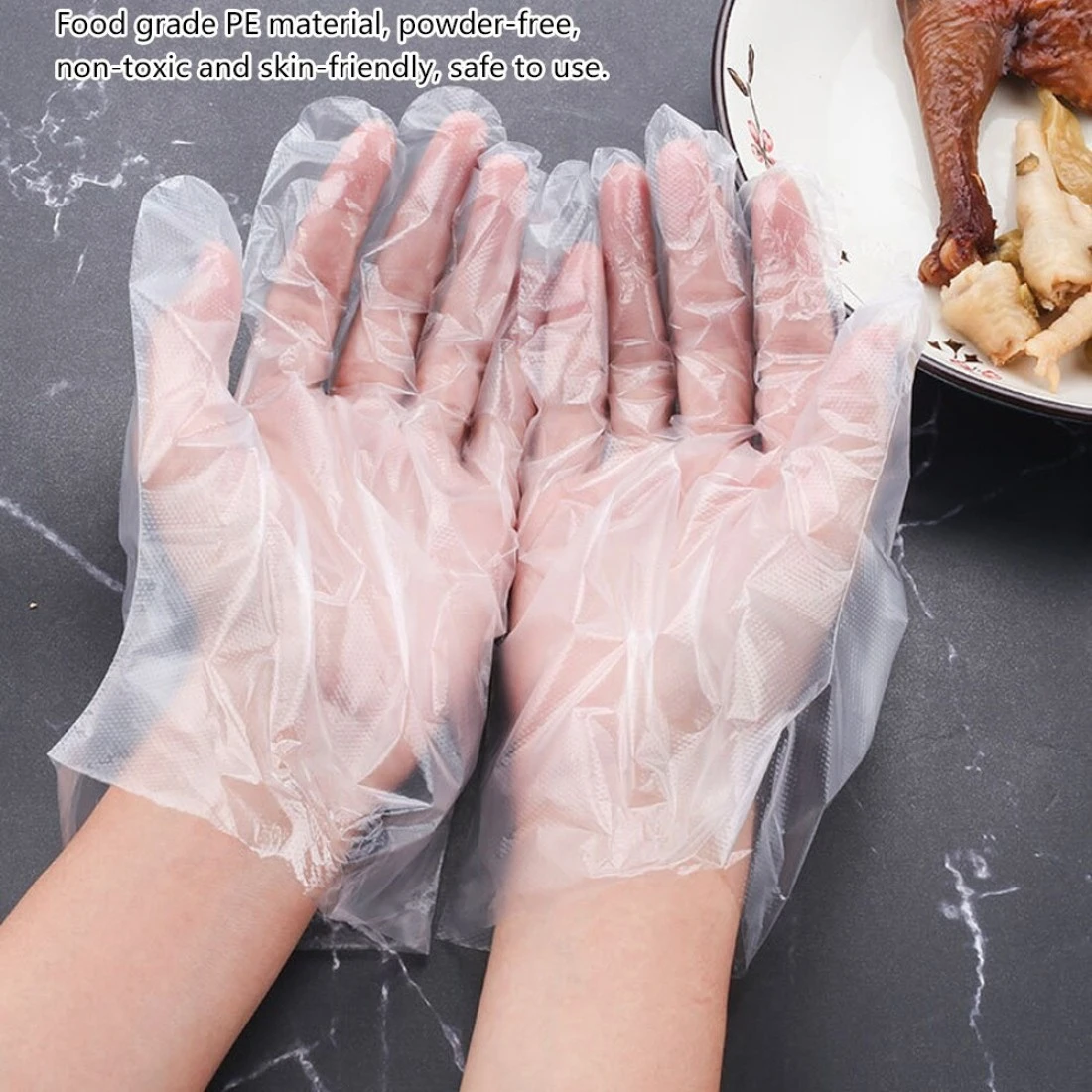 KKmoon-100Pcs Disposable Gloves Transparent Clear Thicken Soft Flexible Comfortable Protective Gloves for Kitchen Cooking Cleaning Restaurant Home Service