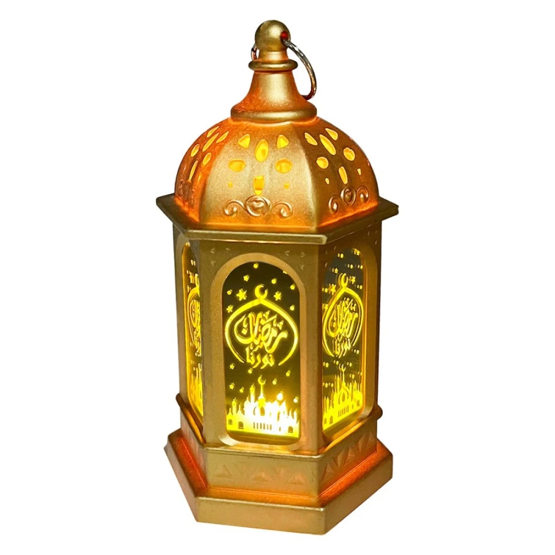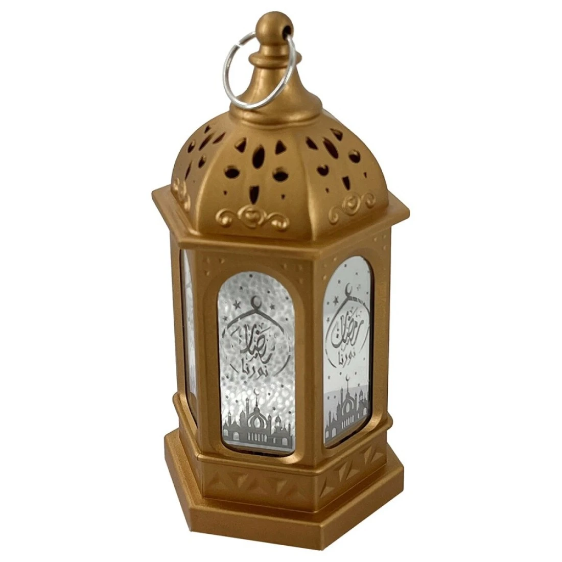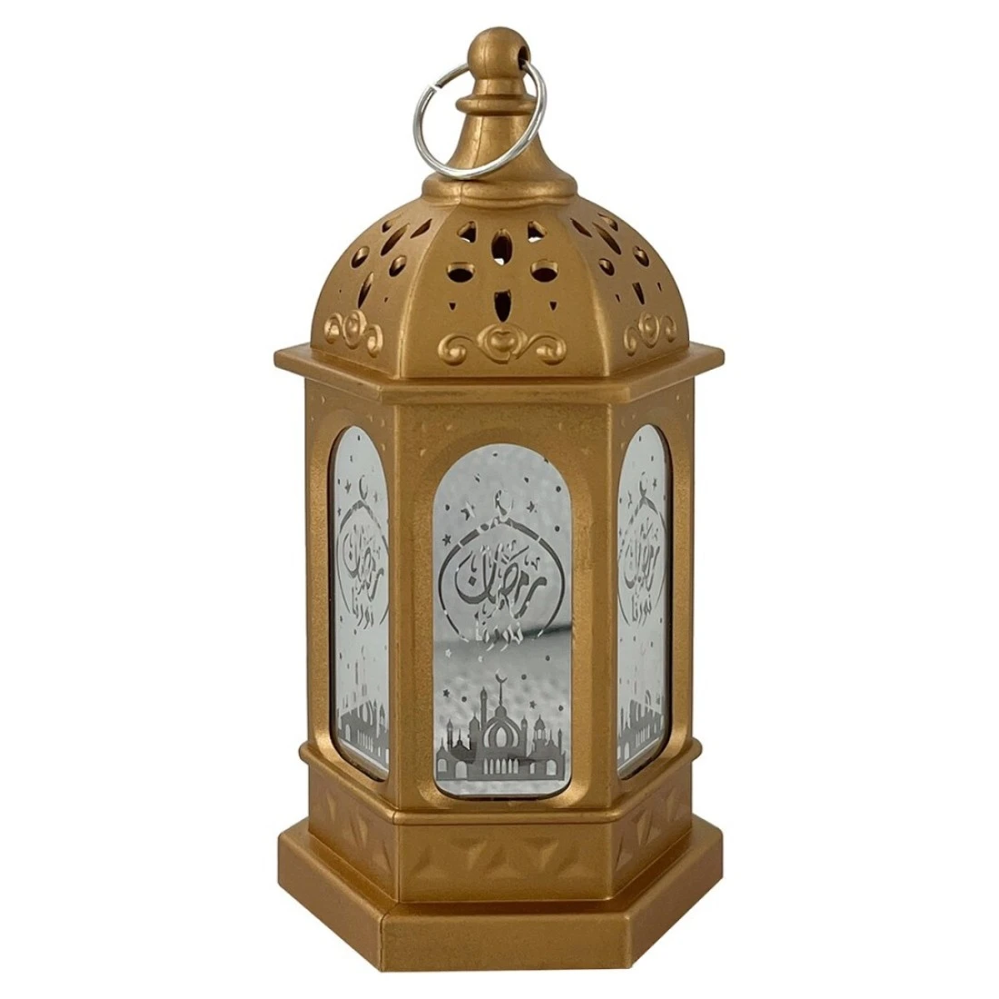 Eid Metal Lantern with Lights Gold 7x7x13cm