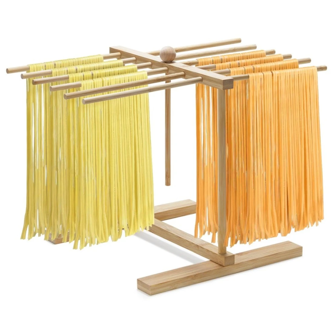 Pasta Drying Rack, AMOHEE 12 Bars Pasta Drying Rack Collapsible with Transfer Wand for Fresh Pasta, Spaghetti, Fettuccine, Lasagne