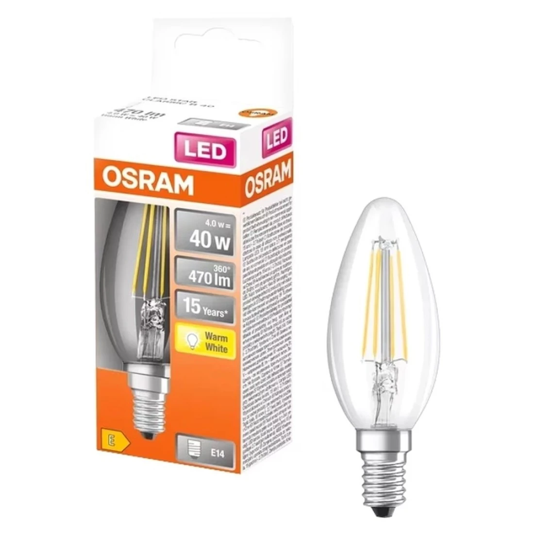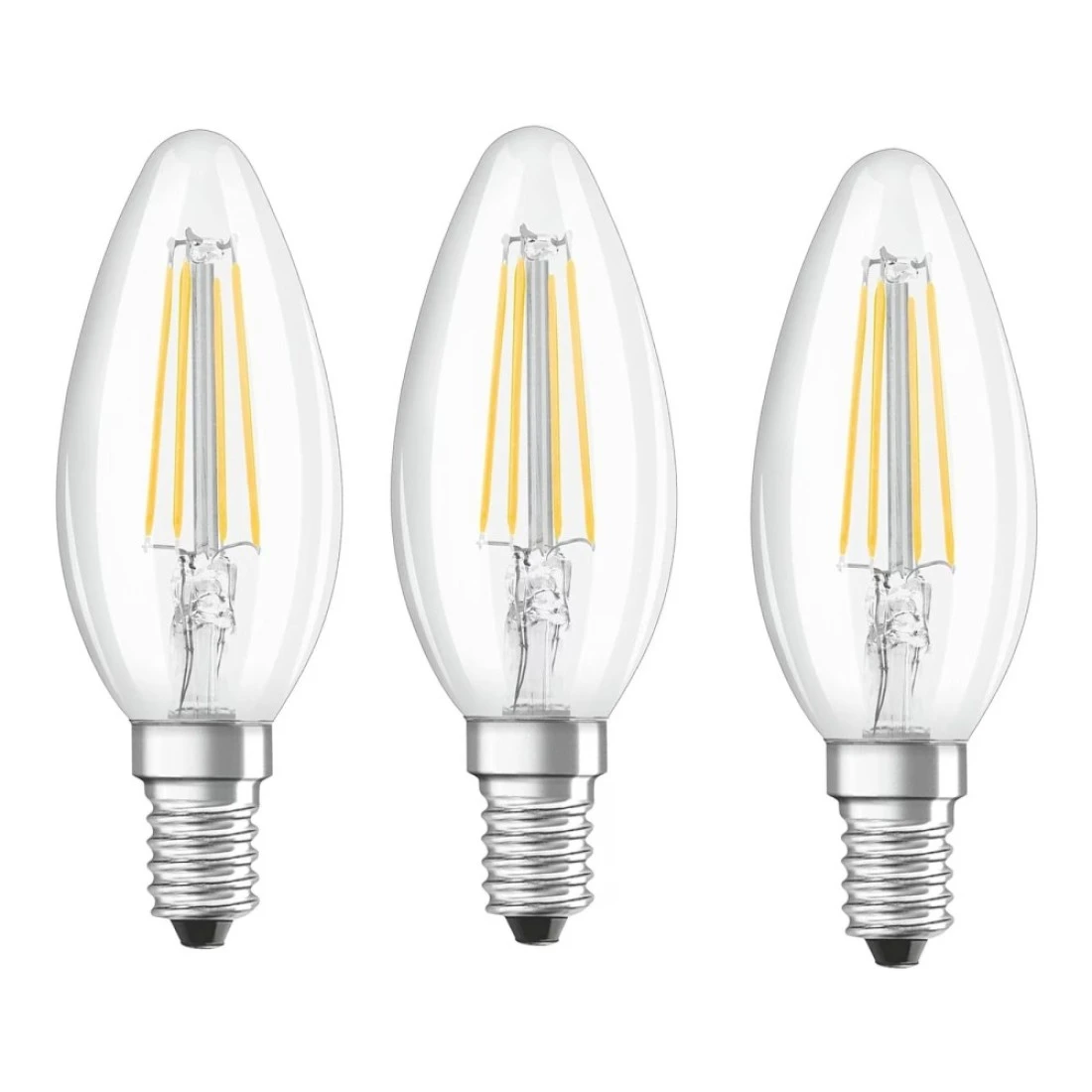أوسرام فتيليمنت لمبة LED على شكل شمعة من باللون الأبيض الدافئ 4 واط E14، 3 قطع
