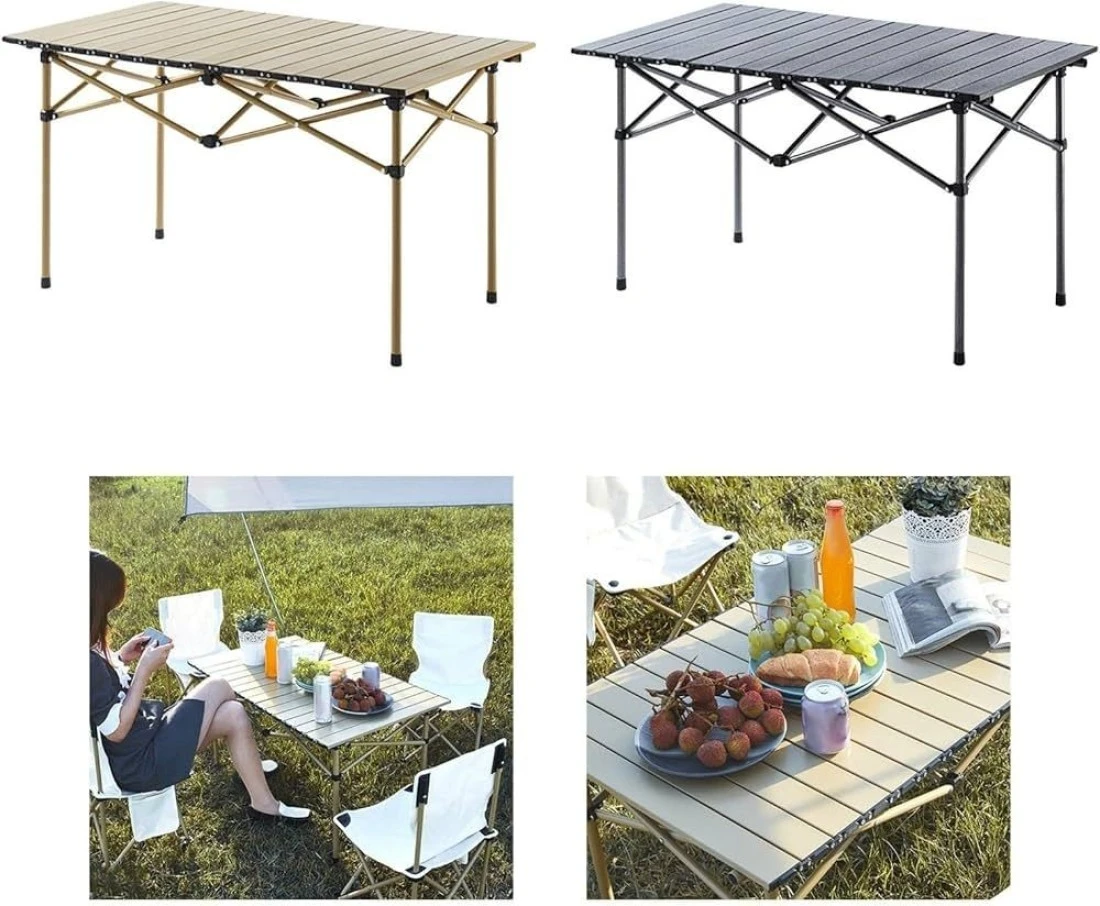 طاولة قابلة للطي باللون البيج لحفلات التخييم والنزهات وصيد الأسماك في الهواء الطلق