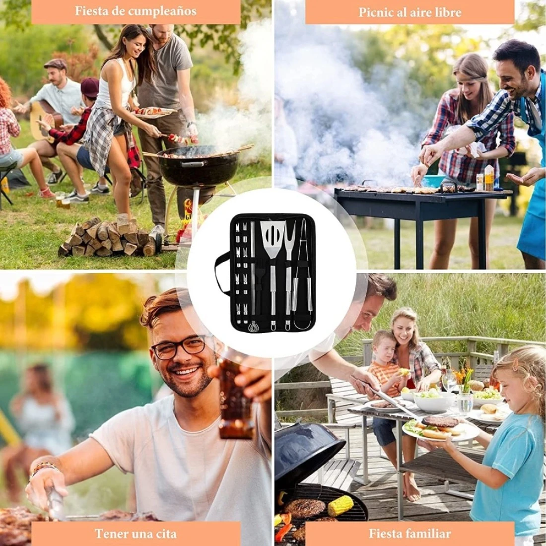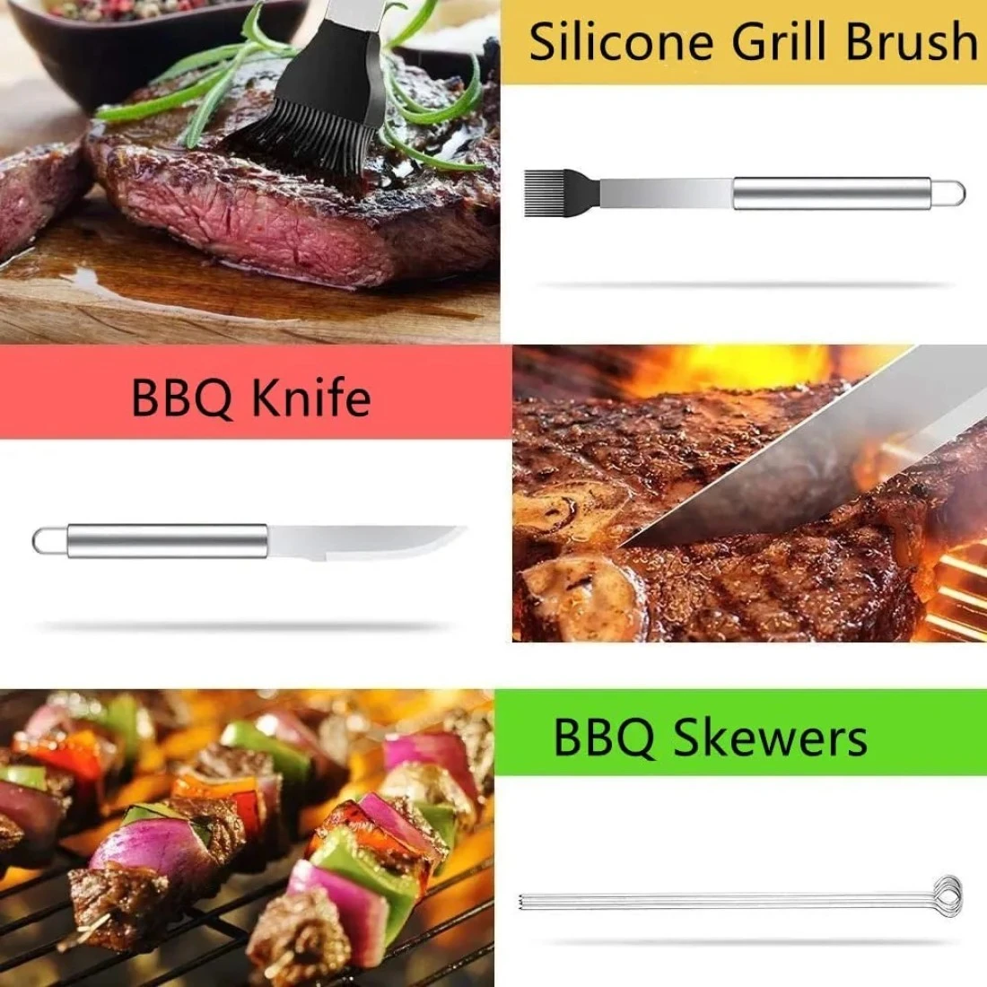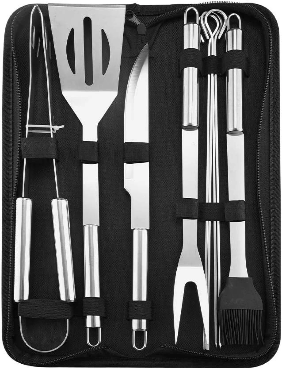 BBQ Grill Accessories Tools Set: Stainless Steel Barbecue Grilling Utensils Kit for Outdoor Camping / Picnic / Party (9 Pieces)