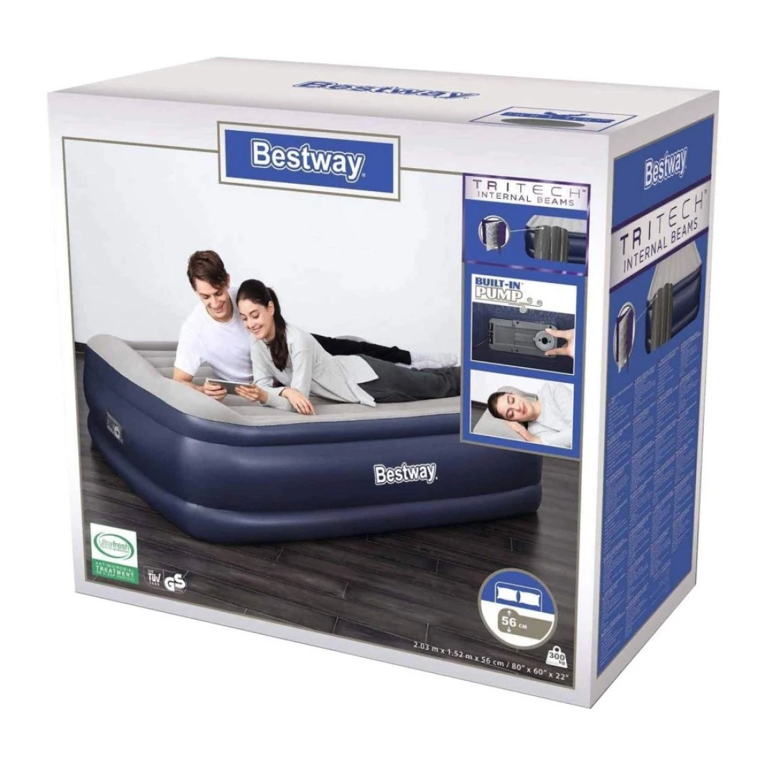 بيست واي كوين سرير هوائي مع مضخة تيار متردد أزرق 203× 152× 56 سم