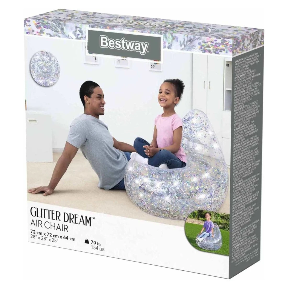 بيست واي كرسي هوائي بلون فضي بتصميم ساحر بحجم 72 × 72 × 64 سم