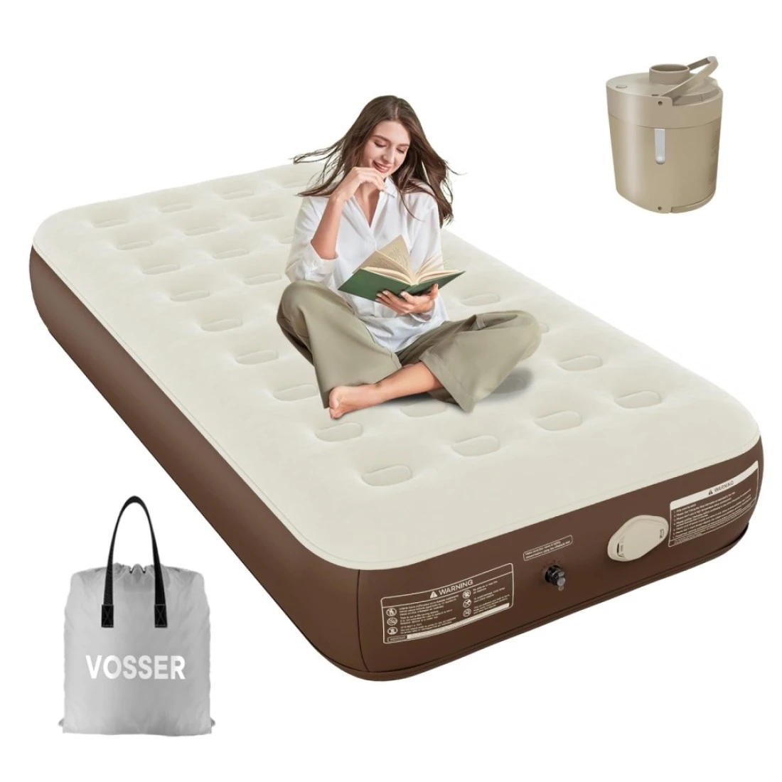 VOSSER Twin Air Mattress with Built in Pump Inflatable Mattress with Flocked TopFast Easy Blow Up Mattress with Storage Bag Luxury Rest Airbed for Home Camping Guests