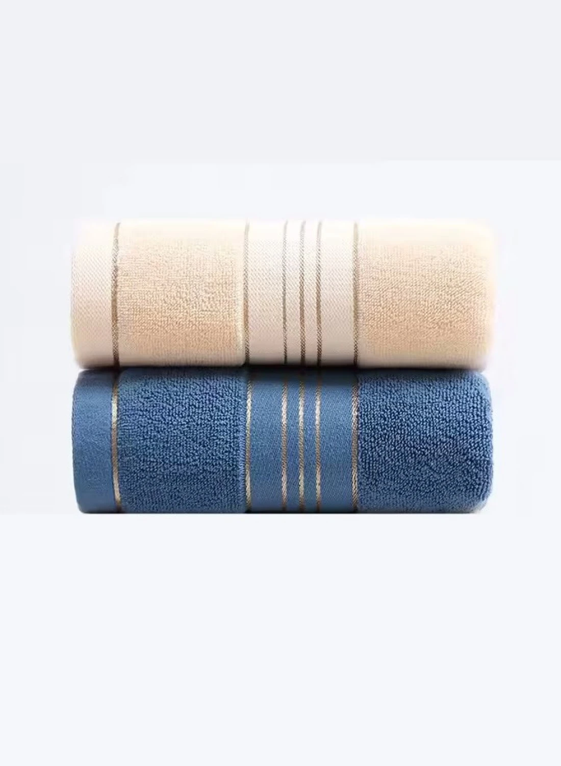 مجموعة مكونة من قطعتين - مناشف حمام كبيرة وناعمة فاخرة 100% قطن 400 جرام لكل متر مربع للشاطئ والمنتجعات الصحية والفندق والحمام 70 × 140 سم (قطعة واحدة عاجية فاتحة + قطعة واحدة أزرق بحيرة)