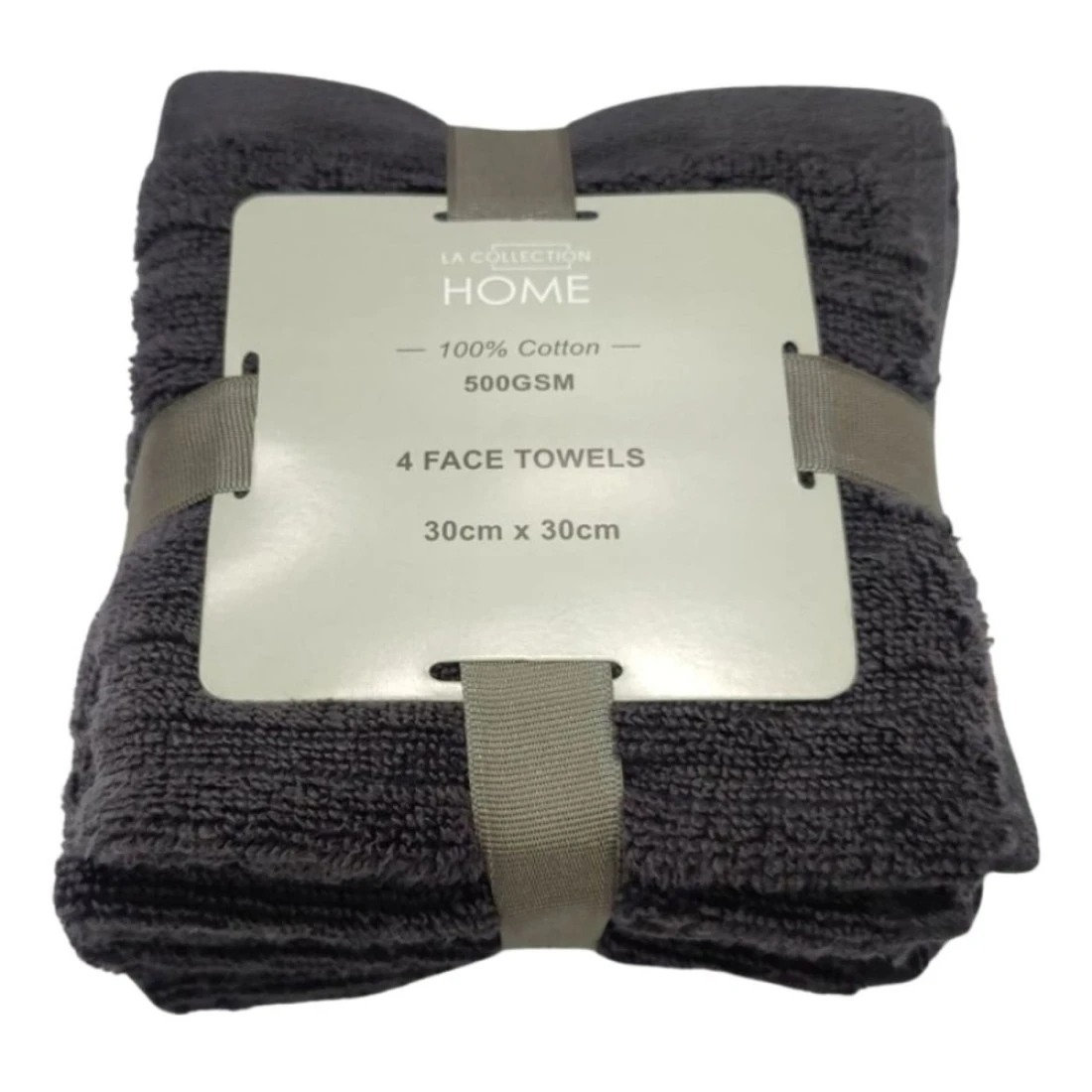 لا كولكشن منشفة وجه 500 GSM من القطن الخالص زيرو تويست (بدون لف) موديل 22003095 مقاس 30 × 30 سم حزمة من 4 قطع - رمادي داكن