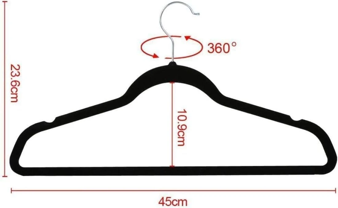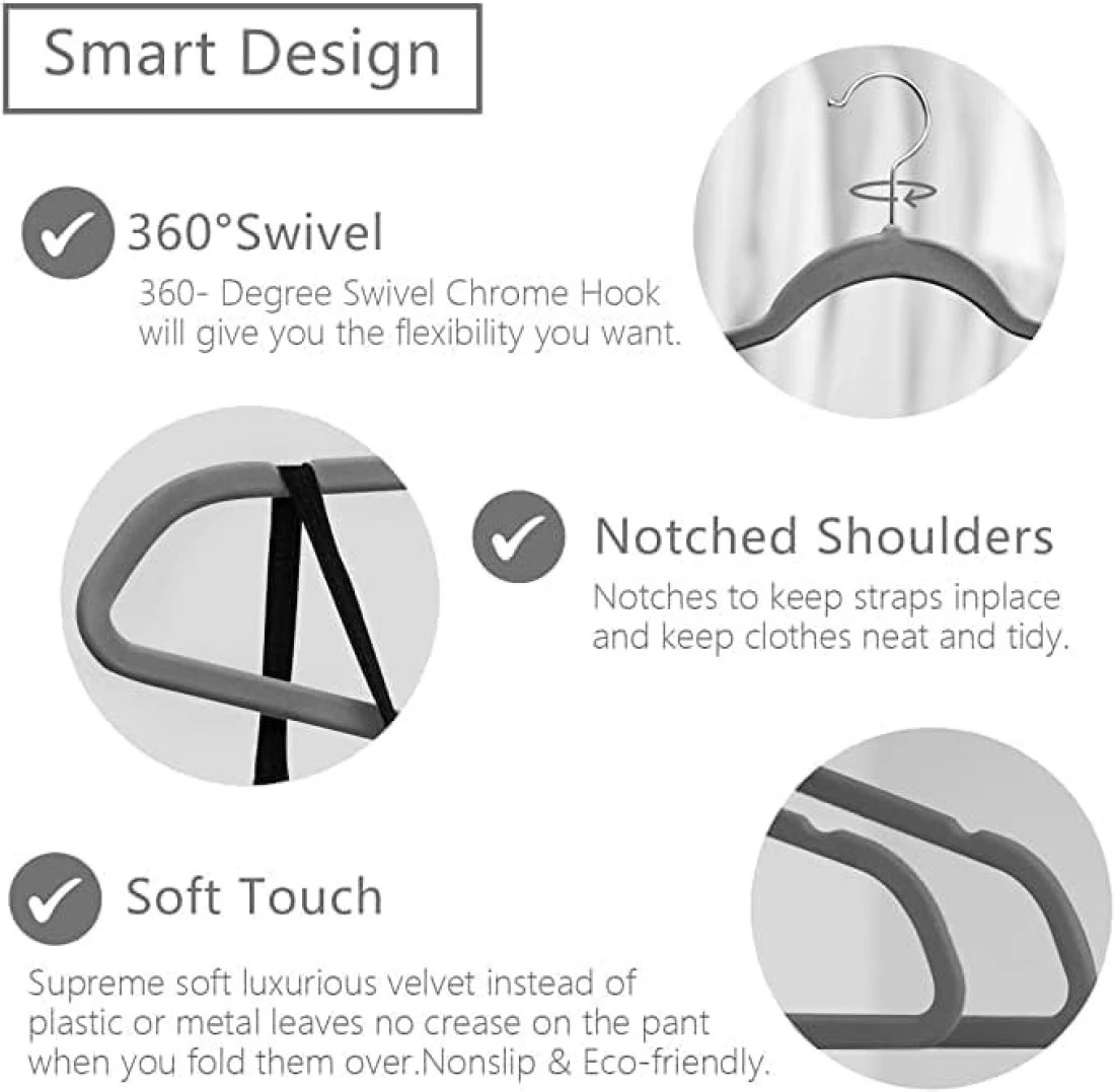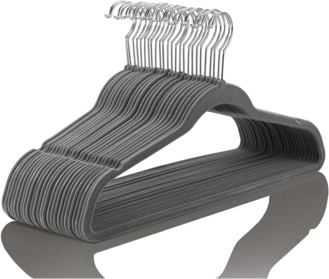 Velvet non-slip Suit Clothes Hangers,360° rotating hook (50pc, Grey)