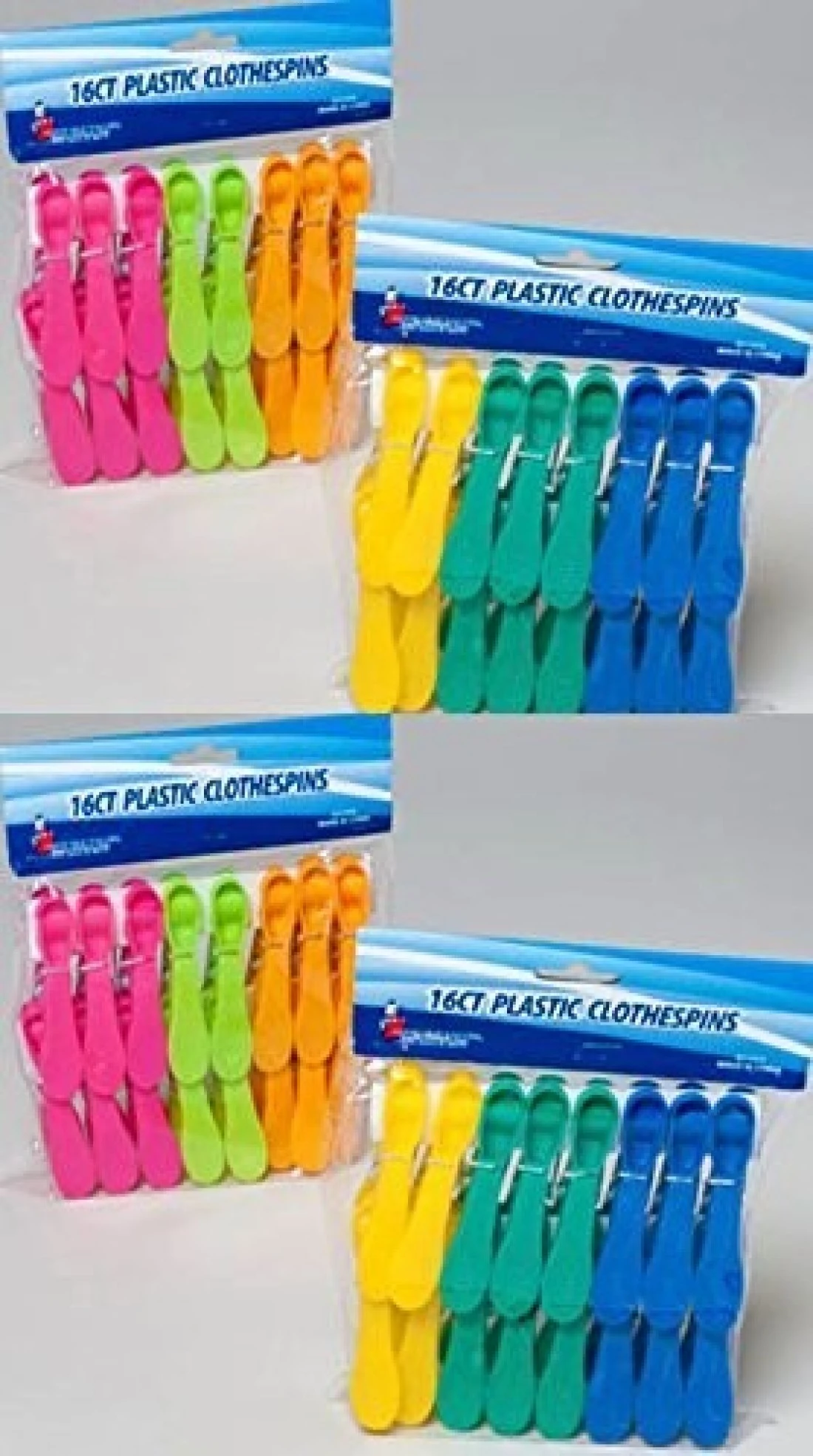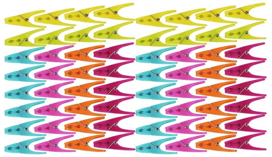 64 Plastic Clothespins w 6 Bright Colors Clothes Pin Laundry Bag Clip Chip Clip Sealer Ect
