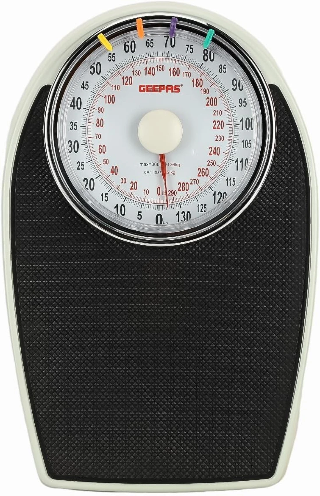Geepas Mechanical Personal Scale, GBS46528UK, Multi-Purpose Weighing Machine With High Precision/Dial Readings, 136kg Capacity, Metal Construction, Leather Surface - 2 Year Warranty