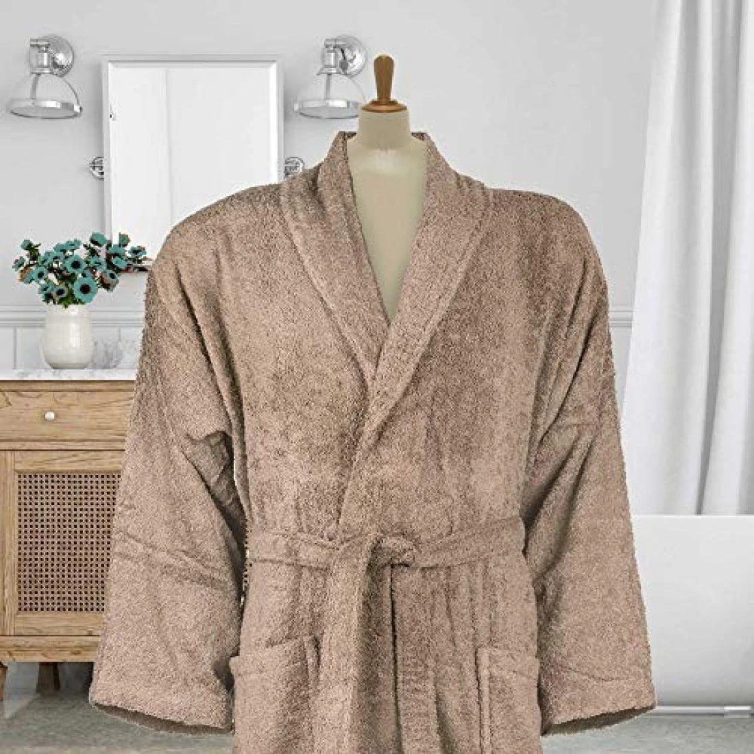 Lushh Shawl Bathrobe for Women and Men Terry Bathrobe - Spa Hotel Bath Robe -Highly Absorbent, Lightweight with Pockets – Unisex , Dark Beige (S/M)