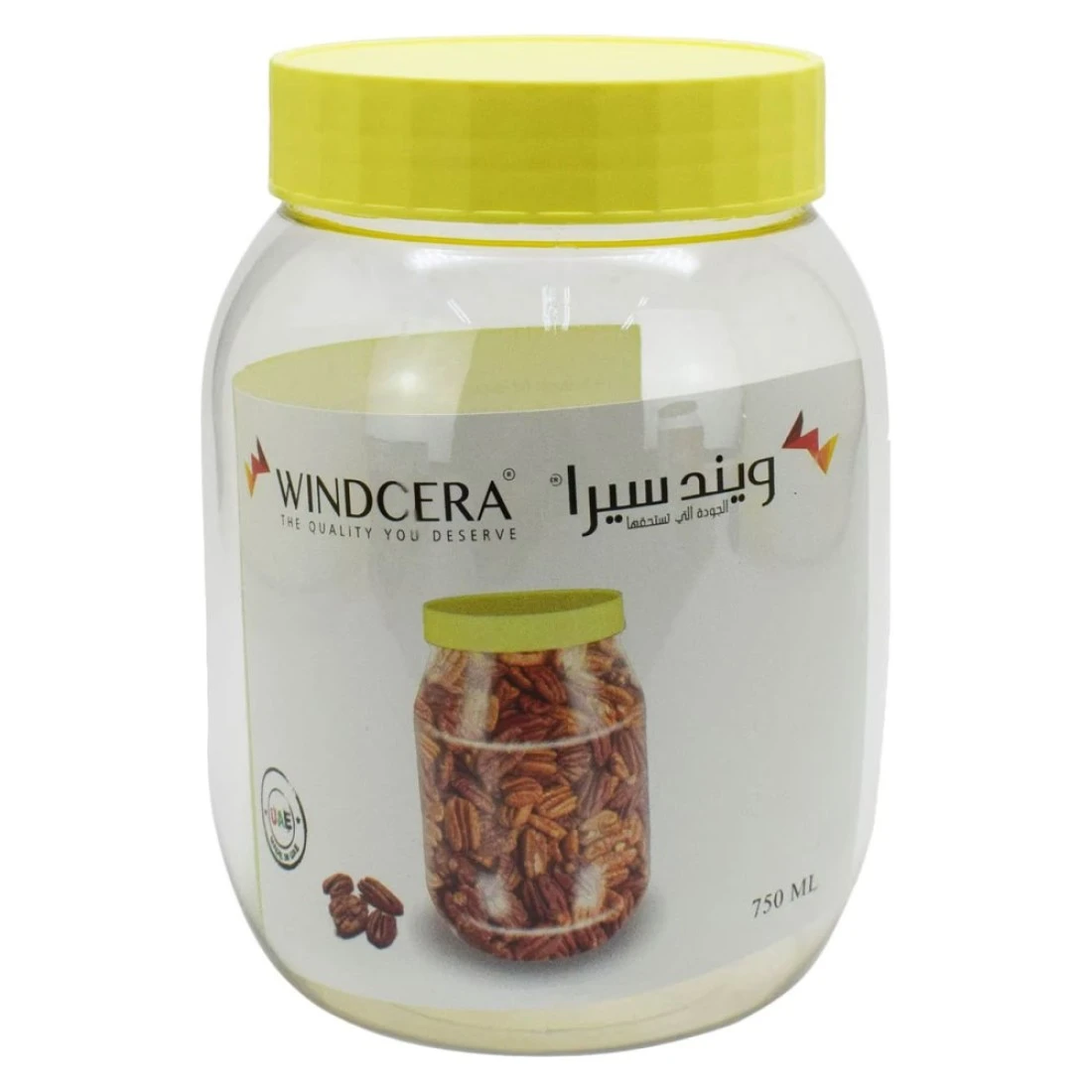 ويندسيرا برطمان تخزين منتجات للحيوانات الأليفة شفاف/أصفر 750 ملل