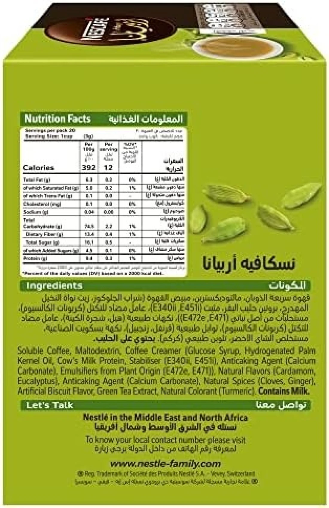 نسكافيه اربيانا قهوة عربية مع هيل، 3 اكياس/20غم