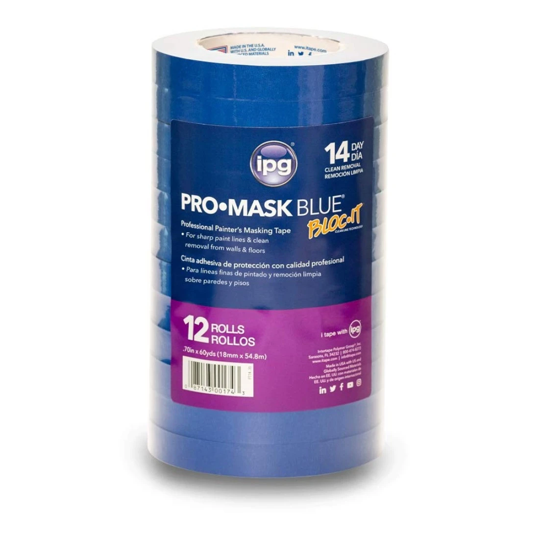 IPG ProMask Blue with BLOCIt Premium 14Day Masking Tape 70 x 60 yd Blue 12Pack