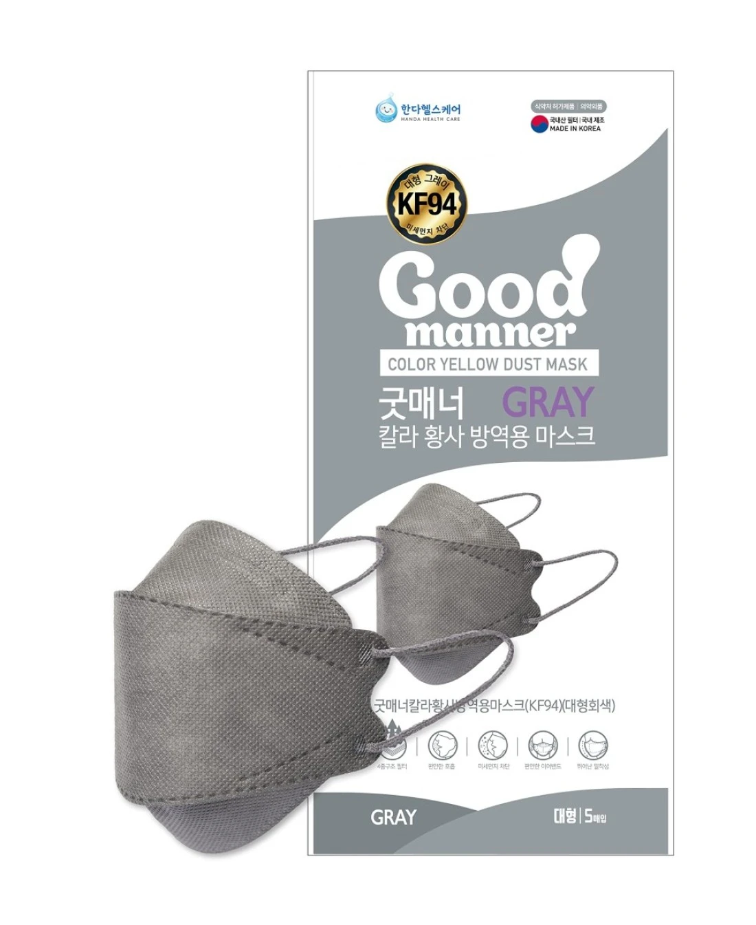 CHARMZONE Good Manner Premium Protective Mask 5EA Large WhiteBlackGreyPinkBeige Made in Korea