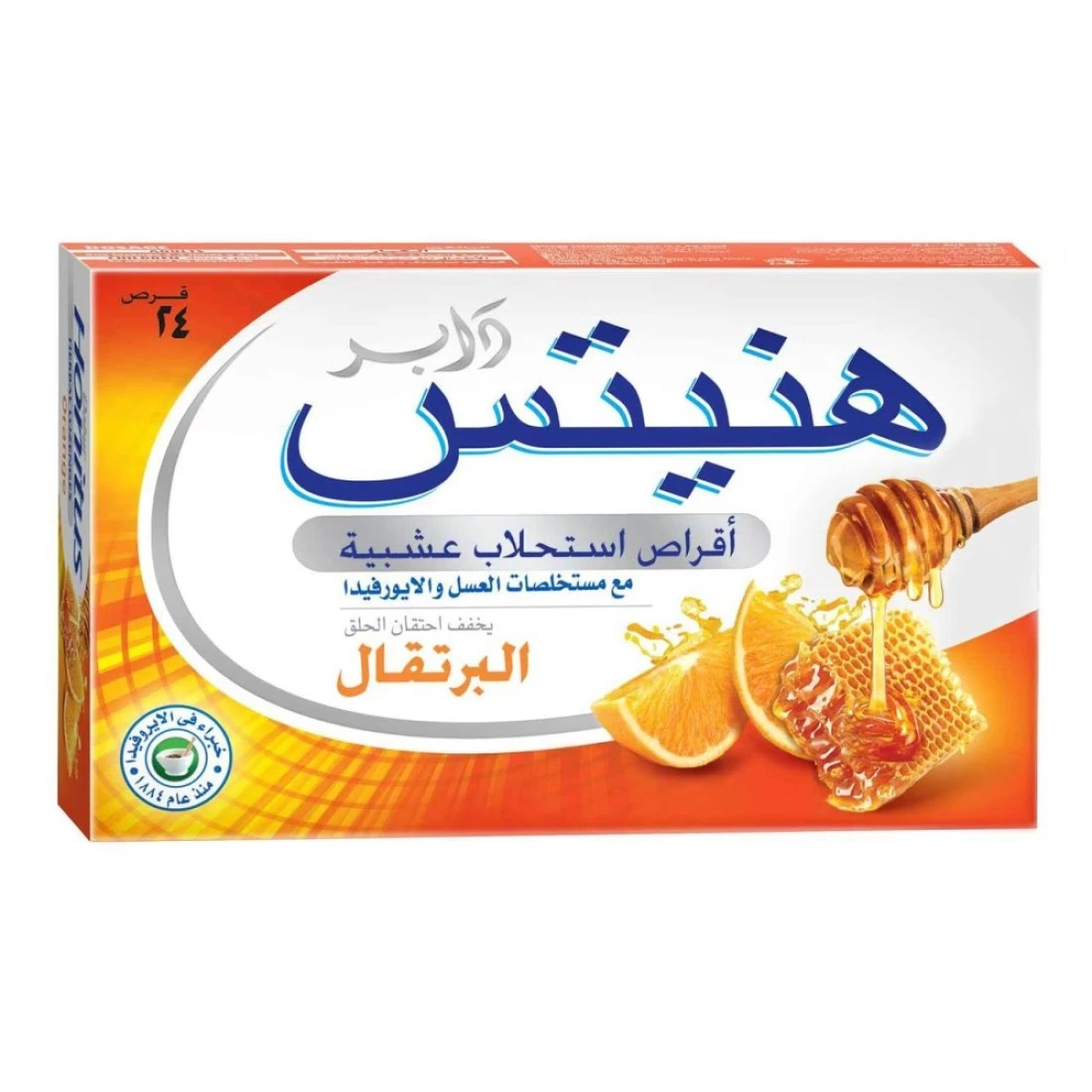 دابر هونيتوس أقراص إستحلاب عشبية بنكهة البرتقال لتخفيف إلتهاب الحلق 24 قرص