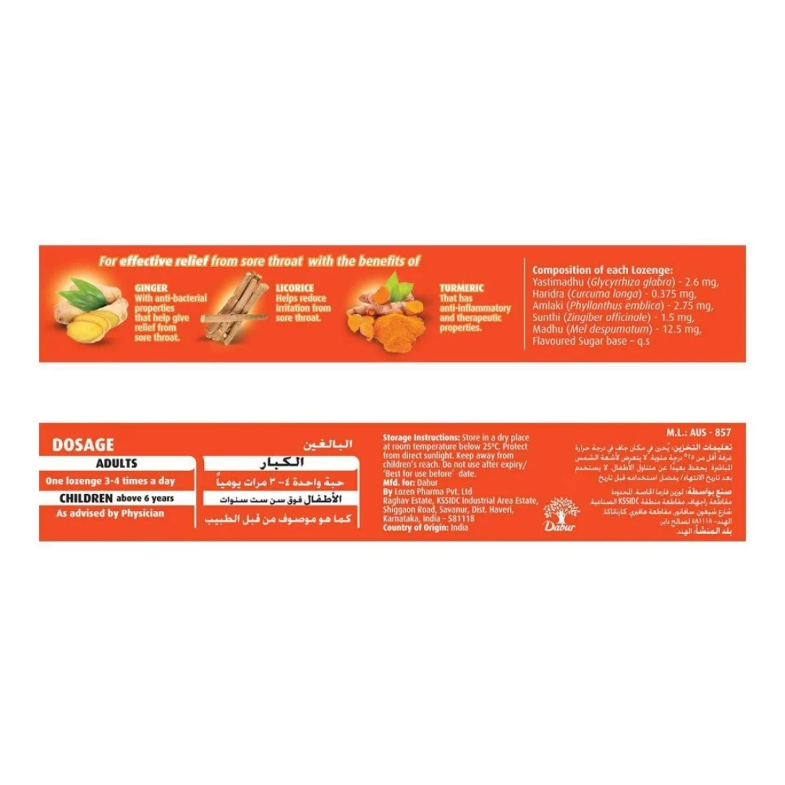 ingredients : زنجبيل، كركم ، عرق السوس، عسل، مستخلصات الأيورفيدا، برتقال.