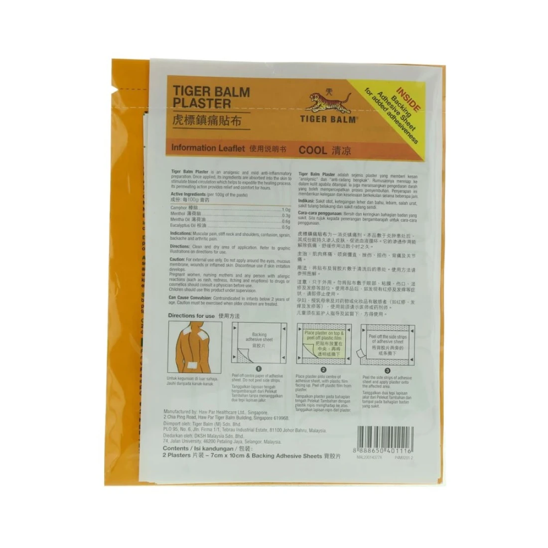 - باستخدام تقنية الهيدروجل على مواد تهوية غير منسوجة، يعتبر اللاصق من تايجر بالم (البارد) مريحًا في الاستخدام مع تطبيق سهل وسريع الإزالة الذي لا يترك أي بقايا على الجلد ويوفر تخفيفًا فعالًا وسريعًا لآلام العضلات لساعات