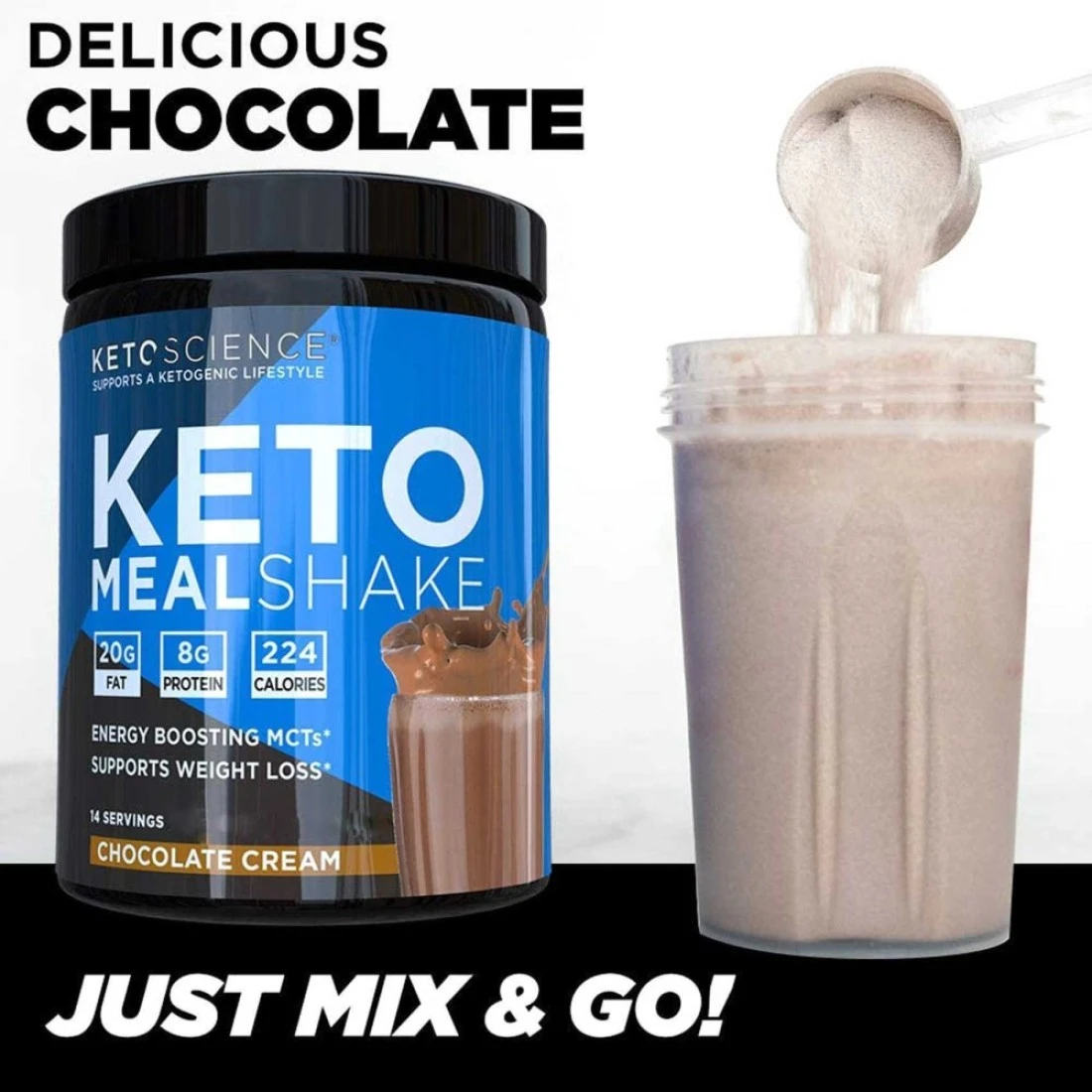 مسحوق شراب وجبة كيتو ساينس بنكهة الشوكولاته هو طريقة لذيذة ومريحة لدعم نمط حياة كيتوجيني. بـ 5 غرامات فقط من الكربوهيدرات الصافية لكل وجبة، يعتبر وجبة خفيفة خالي من الكربوهيدرات وغني بالدهون لأولئك الذين يتبعون نظام غذائي . إنه مصنوع من مسحوق الكاكاو الحقيقي ويوفر نكهة شوكولاته غنية وكريمية. يحتوي على مواد غذائية أساسية وفيتامينات بما في ذلك ببتيدات الكولاجين وزيت MCT والكهرليت. يمكن استخدامه كبديل للوجبة أو كوجبة خفيفة مريحة للمساعدة في البقاء على مسارك ومع أهدافك .