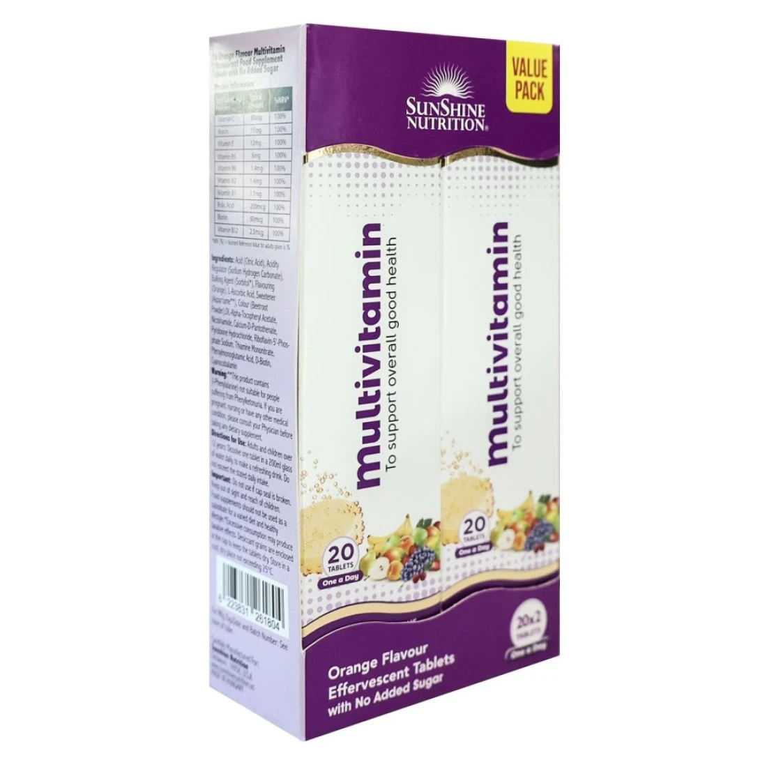 صنشاين نيوترشن فيتامينات متعددة بنكهة البرتقال- أبيض - 20 قرص حزمة من 2