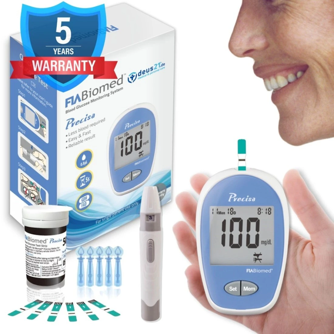 Precisa Blood Glucose Monitor Kit 50 Glucometer Strips 50 Lancets 1 Blood Sugar Monitor Blood Sugar Test Kit with Control Solution Lancing Device Large Display