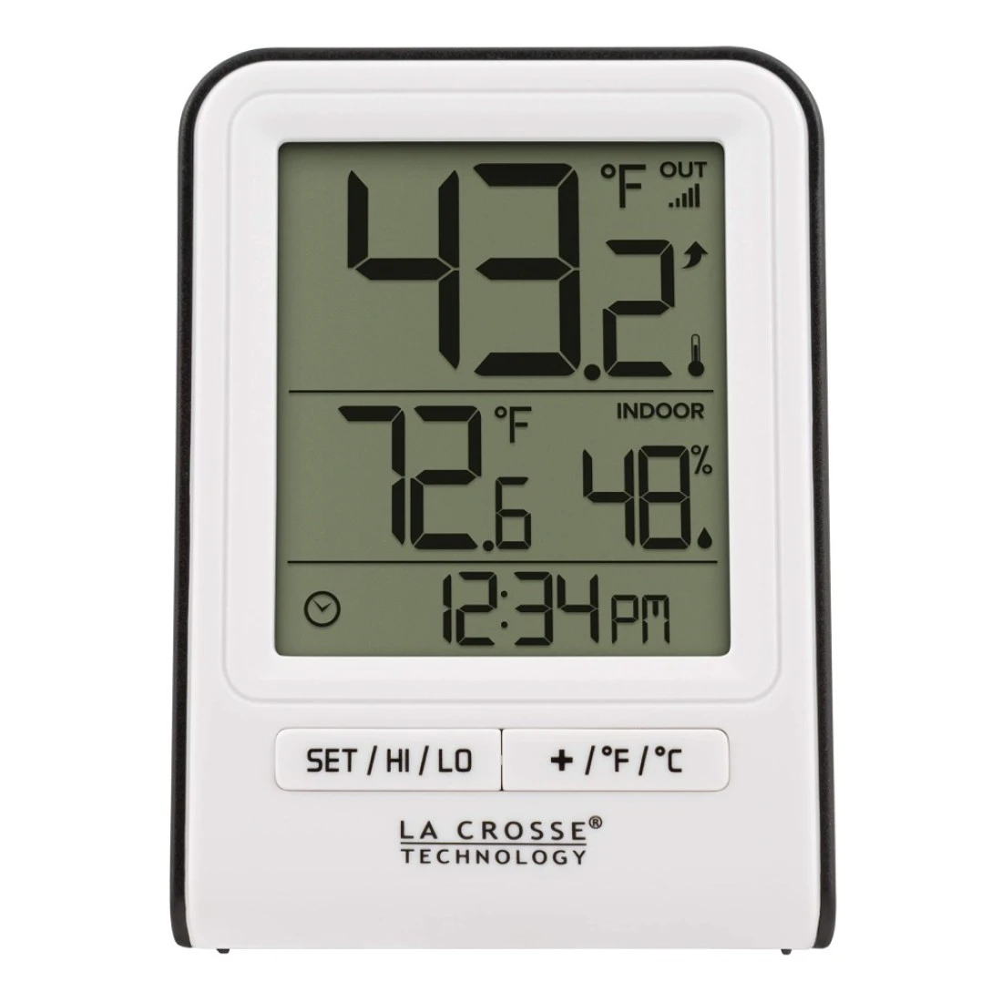 La Crosse Technology Wireless Indoor/Outdoor Temperature Monitor with Hi/Low Records, Humidity, 12/24 Hour Time - 330 Foot Transmission Range