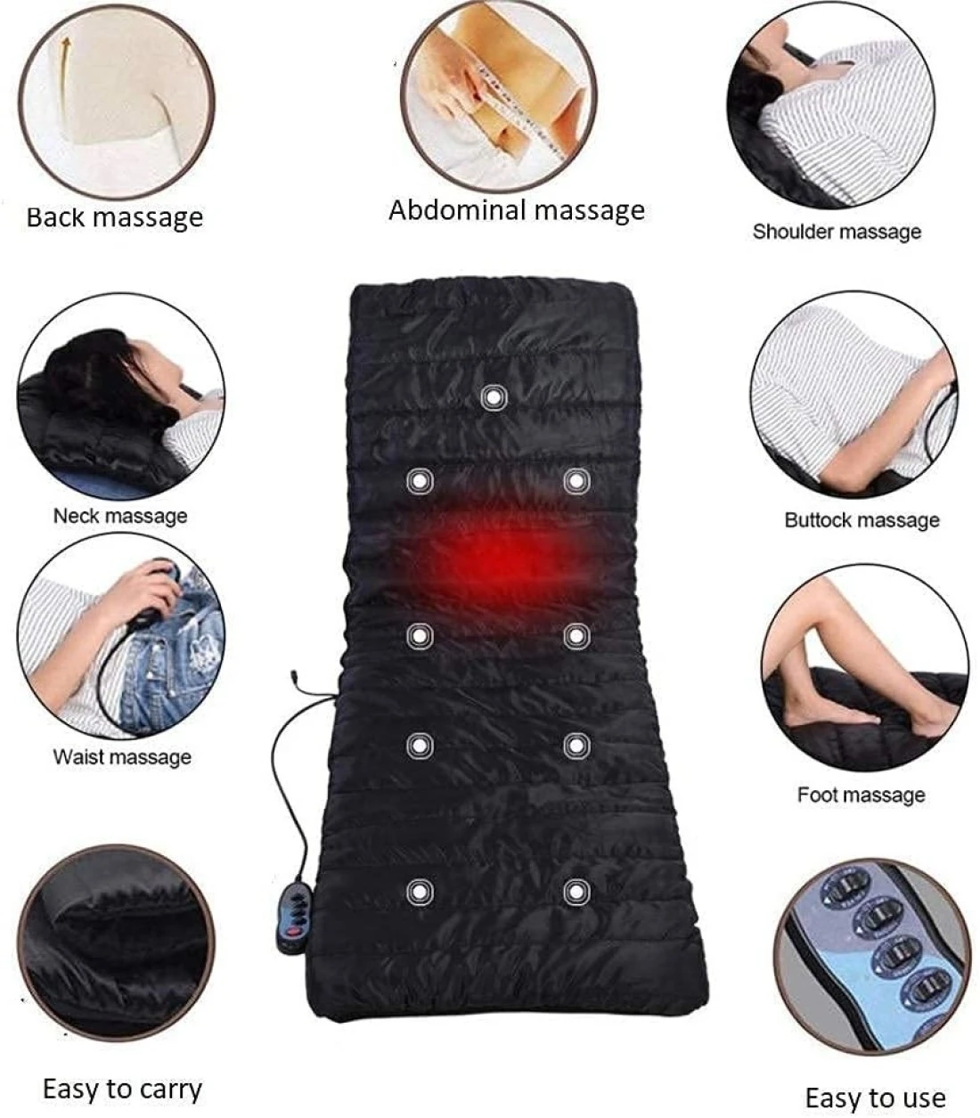 Bed Mattress Body Head, Neck, leg Massager with 9 Motor Vibrator & 9 Soothing Heat,Heated Shiatsu Massager, Relieves Stress or Tension