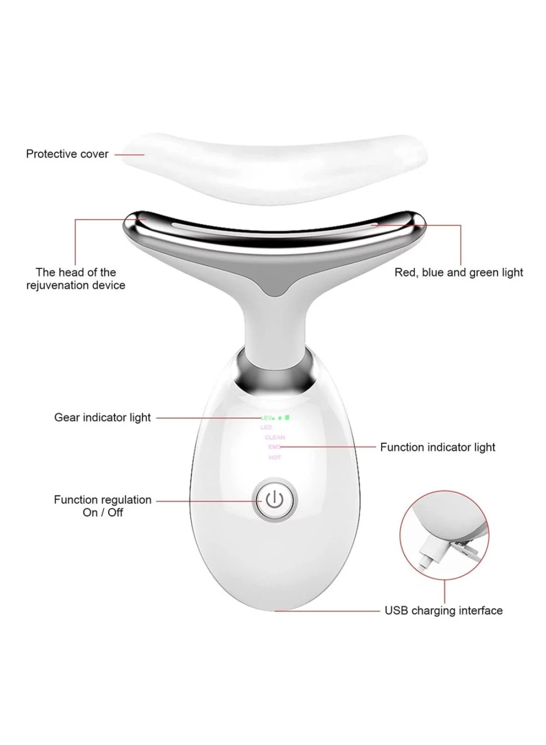 3-in-1 Skin Rejuvenation Device: Combines red light therapy, microcurrent, and vibration massage to effectively target fine lines, wrinkles, and sagging skin, delivering youthful and glowing results.