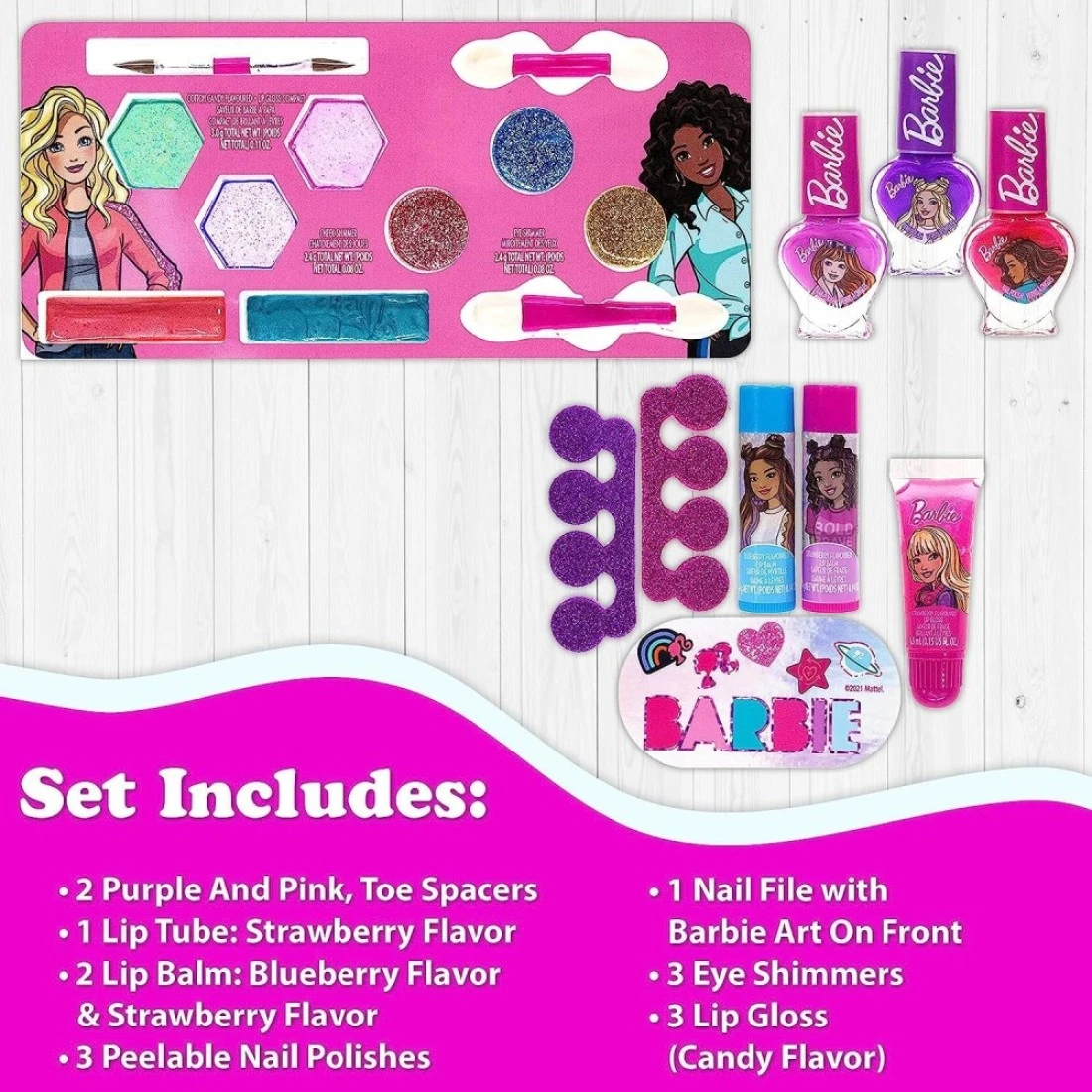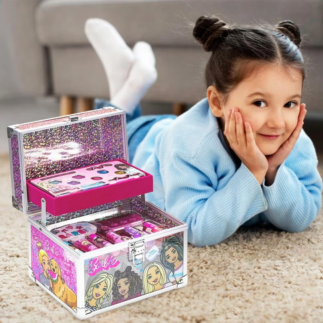 Barbie Movie Kids Makeup Kit for Girls Real Washable Toy Makeup Set Barbie Gift Play Makeup and Pretend Play Toys Ages 3 4 5 6 7 8 9 10 11 12