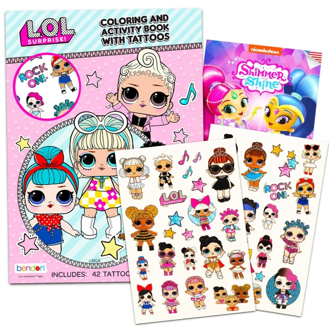 LOL Dolls Temporary Tattoos Party Pack - 25 L.O.L. Tattoos with 25 Shimmer Tattoos and LOL Coloring Book Bundle (LOL Party Supplies)