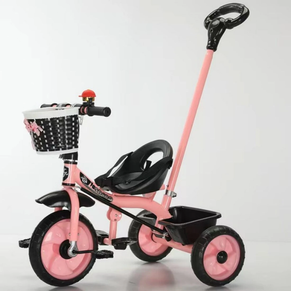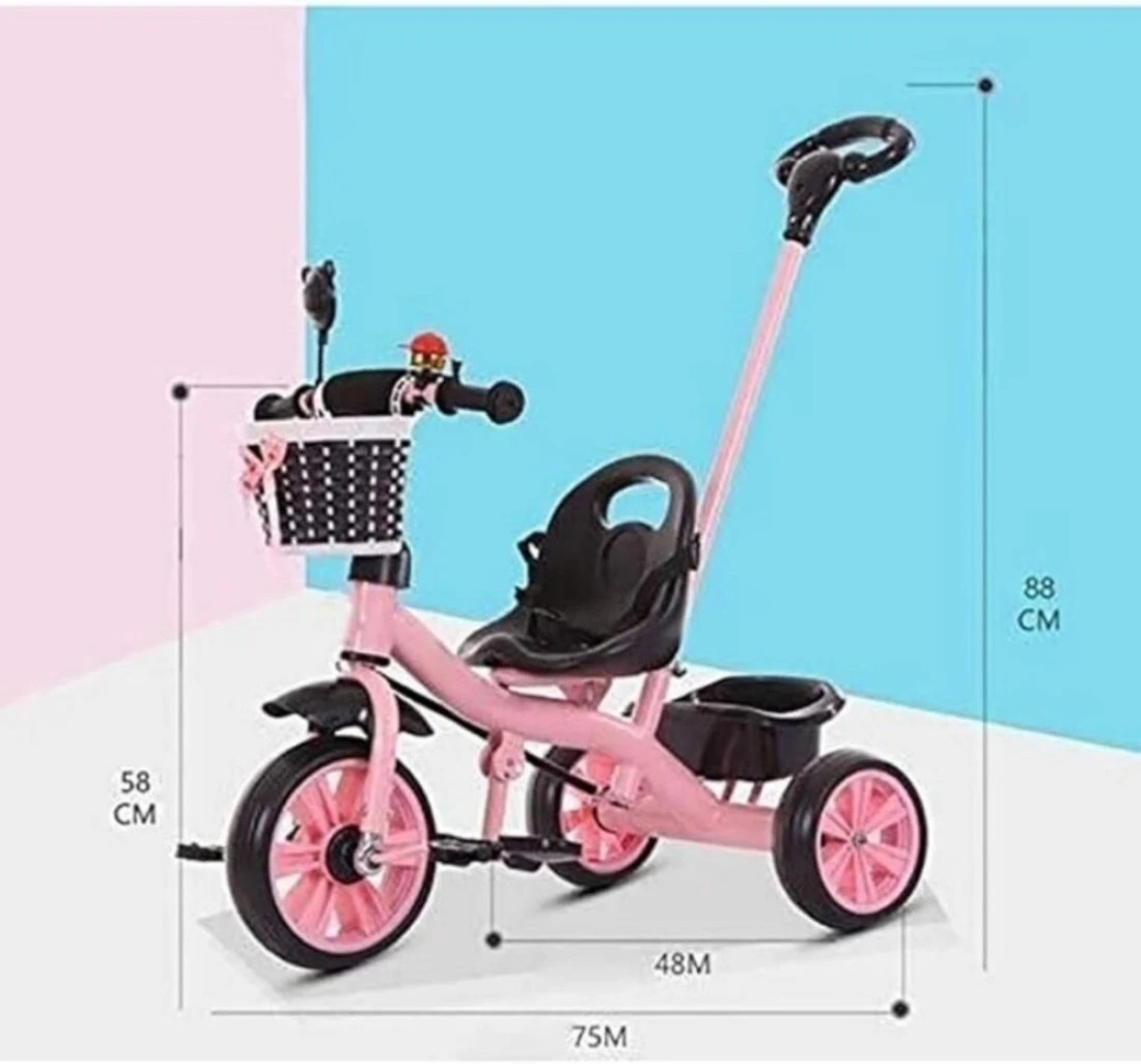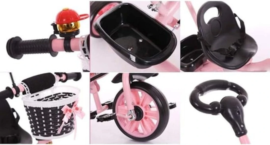 3-in-1 Toddler Tricycle with Push Handle, Safety Bar, and Storage – Lightweight, Convertible, Pink