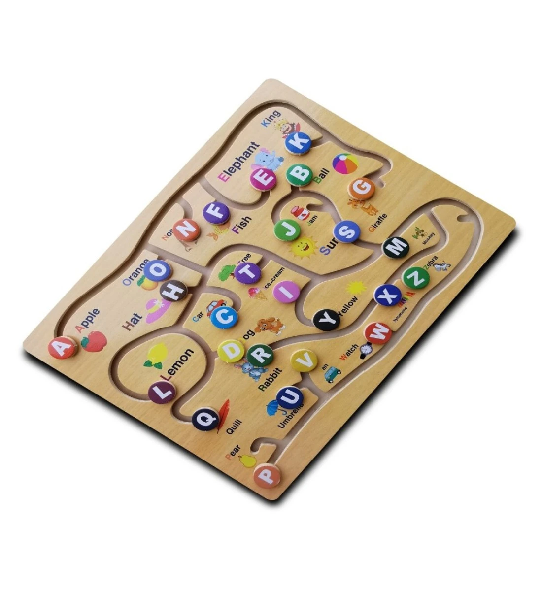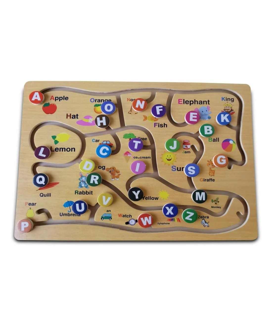 Montessori ABC Alphabet Game Toy For Kid Good For Early Developmental Activity Improves Fine Motor Skills and Color Recognition Maze Wooden Puzzle A Brain Development Game