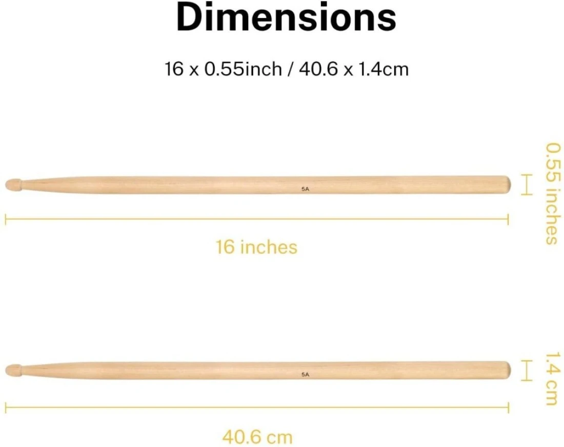 أعواد الطبل 5 أمبير من خشب القيقب من مايك ميوزيك (طبيعية)