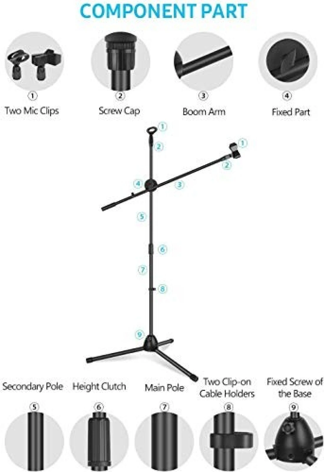 Mike Music Microphone Stand, Upgraded Mic Stand With Dual Mic Clip Holders Adjustable Collapsible Tripod Boom Stands (M2)