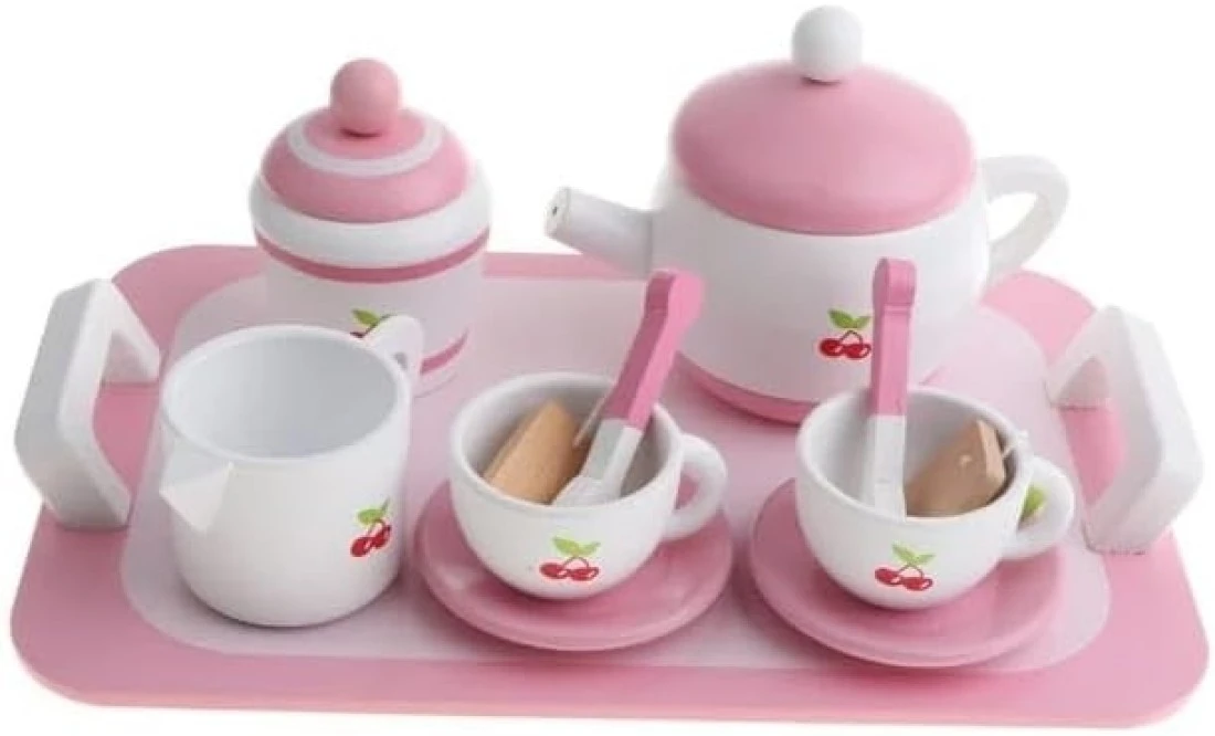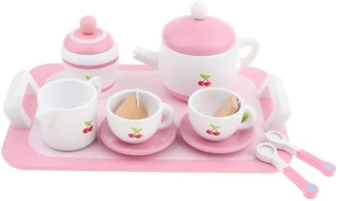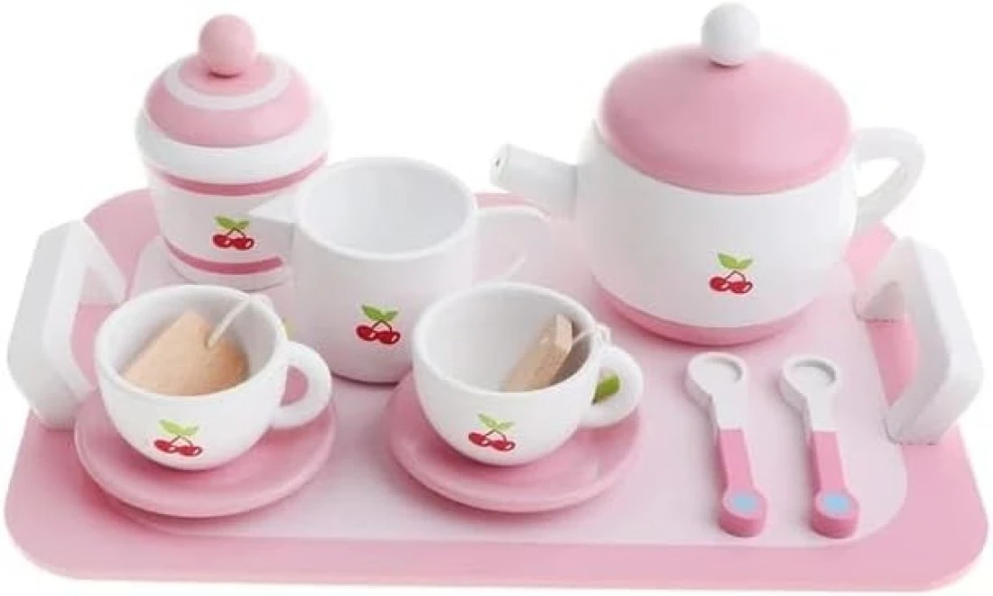 Wooden Tea Set 12pcs Pretend Play Food Accessories Pretend Toy, Teacup Playset, Toy Accessories