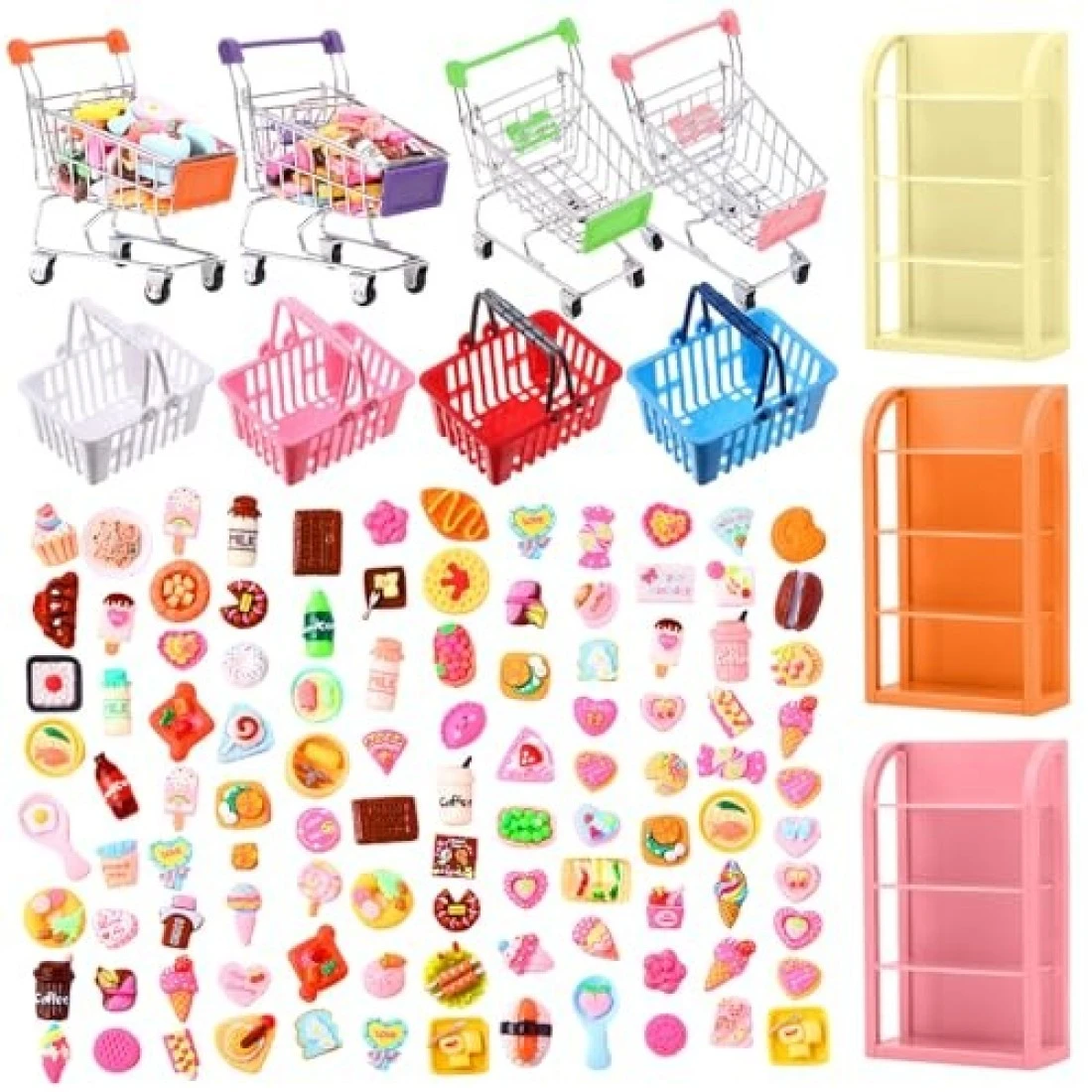 Rotatingpals 161 Pcs Mini Food Miniature Grocery Food Mini Shopping Cart Basket Supermarket Trolleys Doll House Accessories Drink Bottle Kids Toy Cosplay Game for Party Accessory